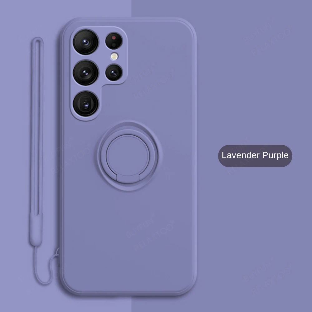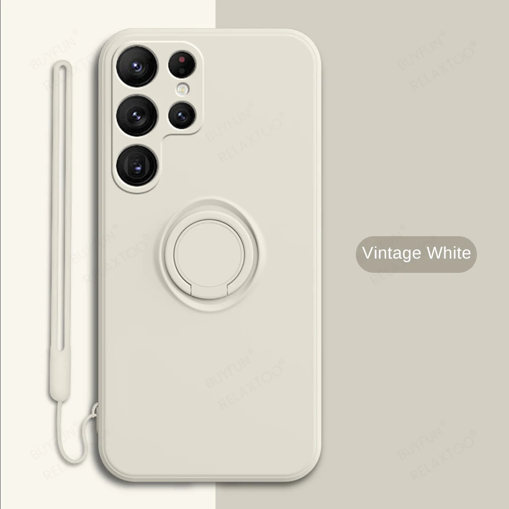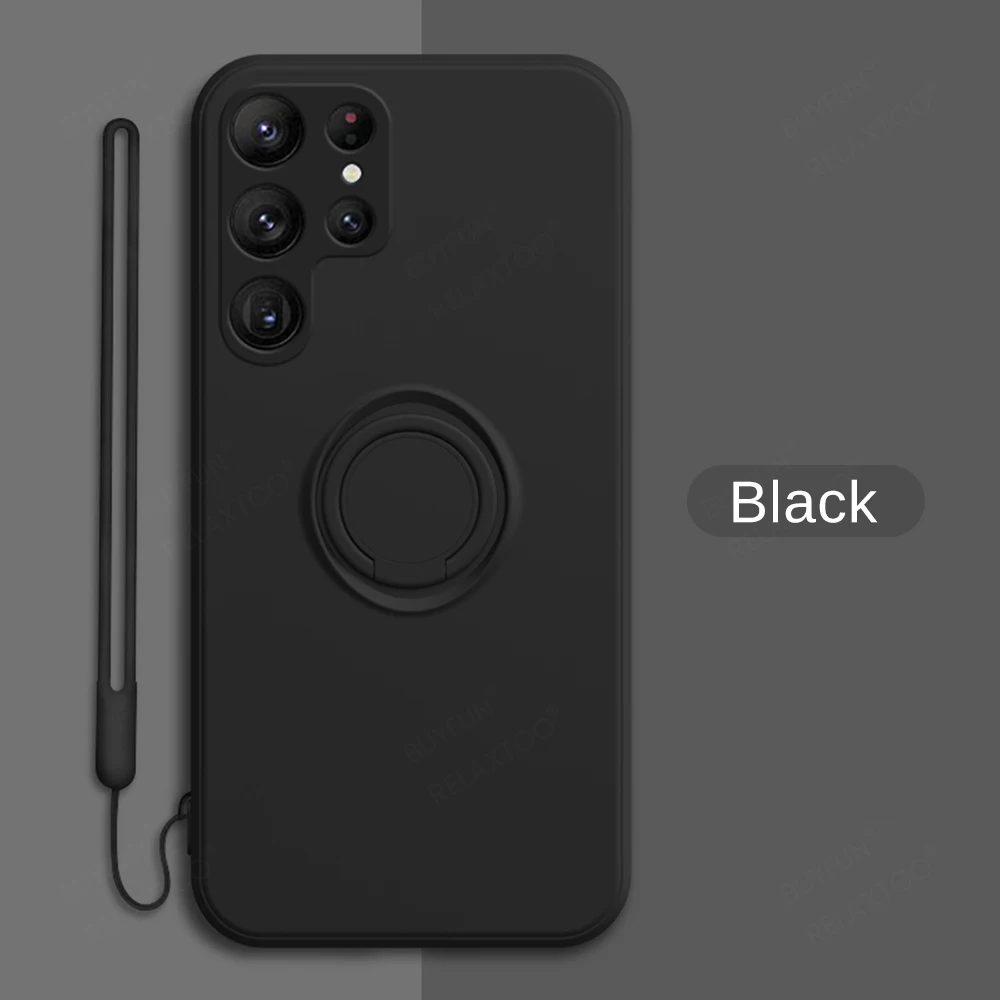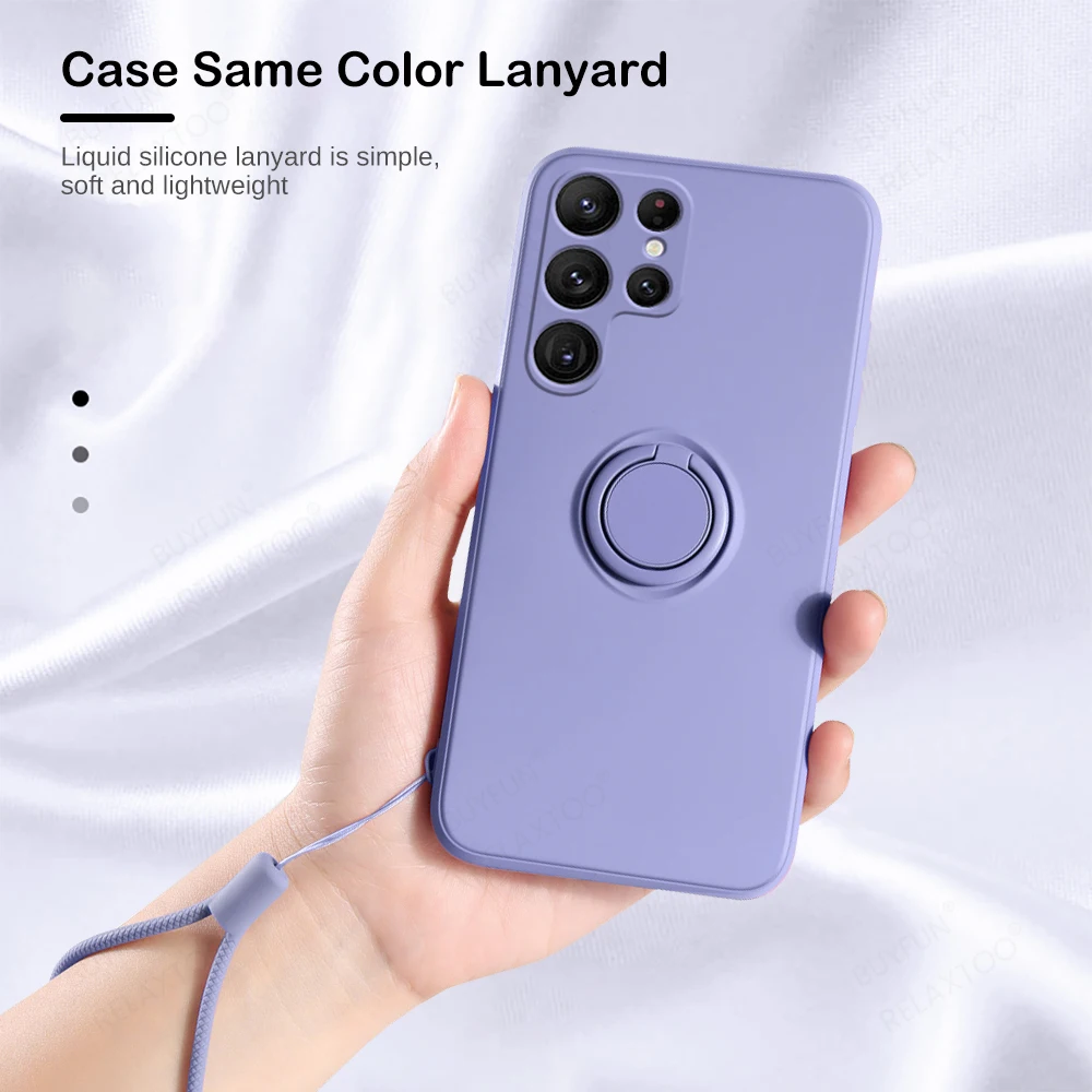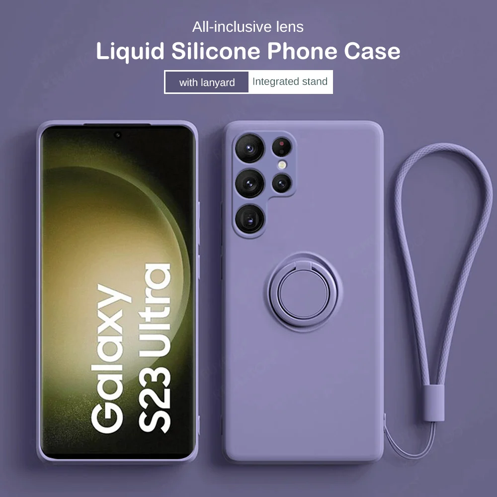 Comprar Funda de silicona líquida para Samsung Galaxy S 23 S23 Ultra Plus, carcasa blanda con soporte magnético, anillo a prueba de golpes y cordón