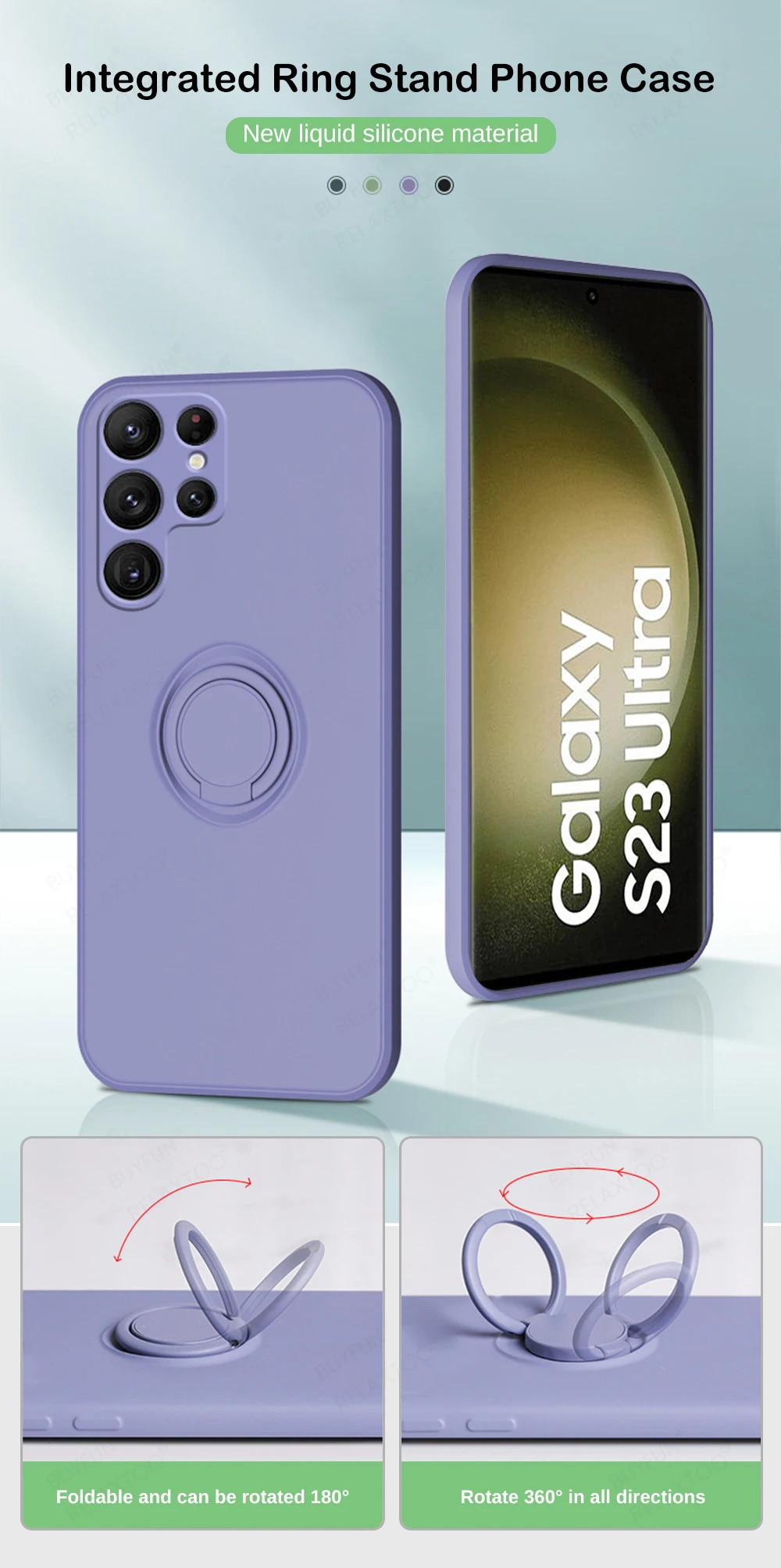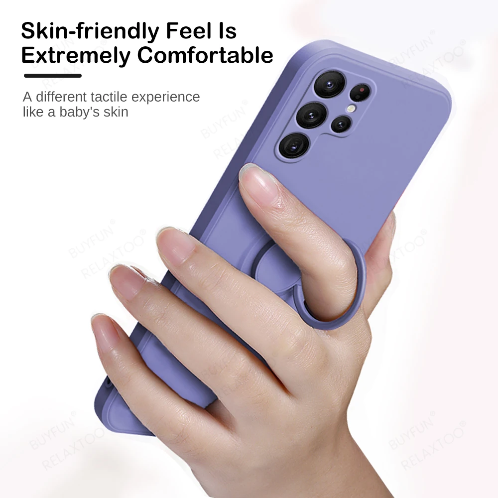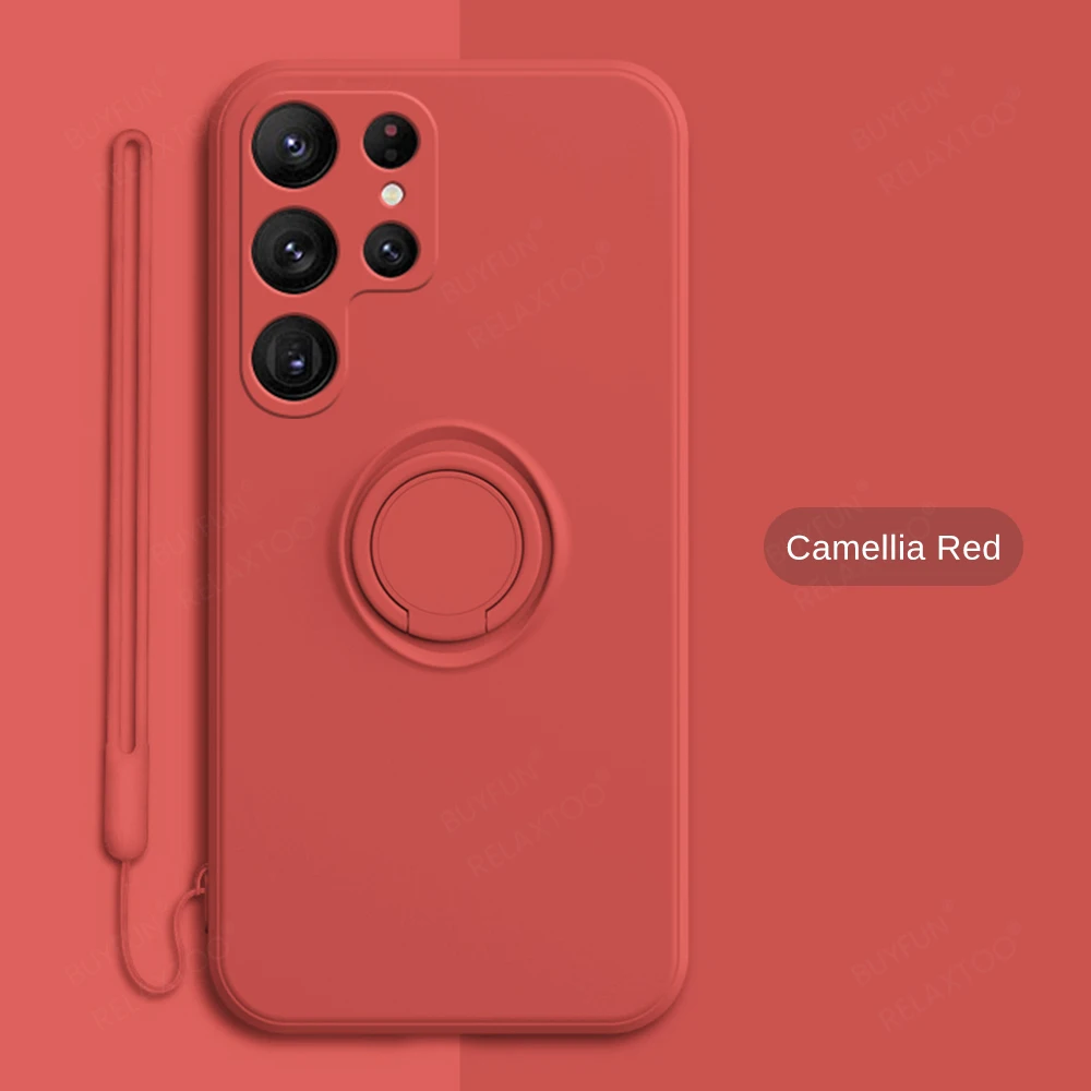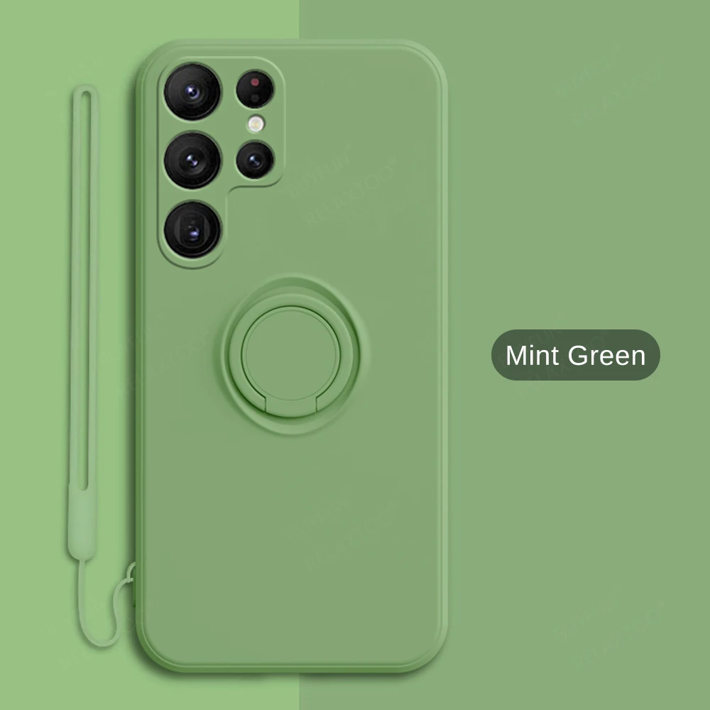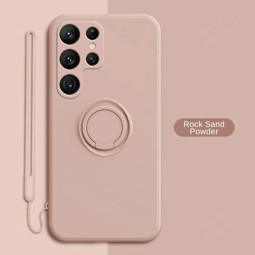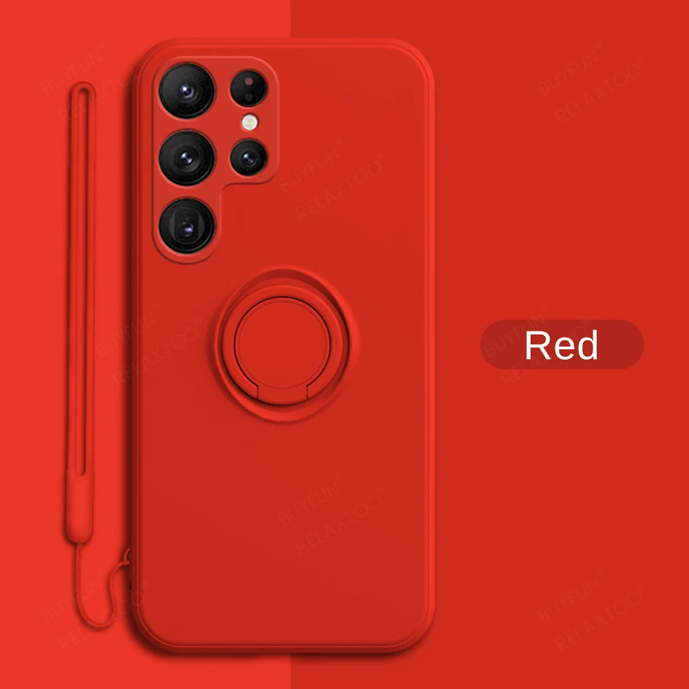 Comprar Funda de silicona líquida para Samsung Galaxy S 23 S23 Ultra Plus, carcasa blanda con soporte magnético, anillo a prueba de golpes y cordón