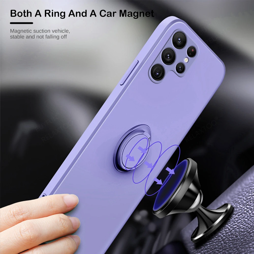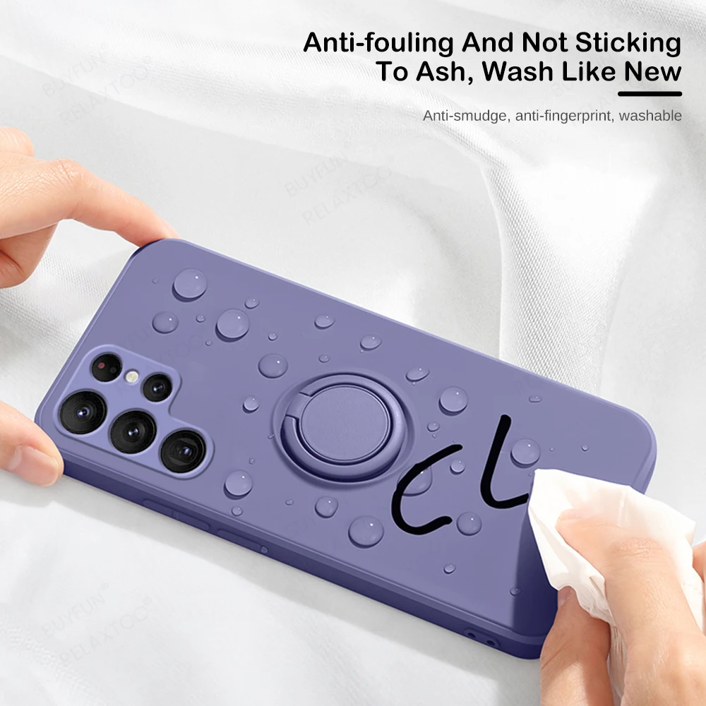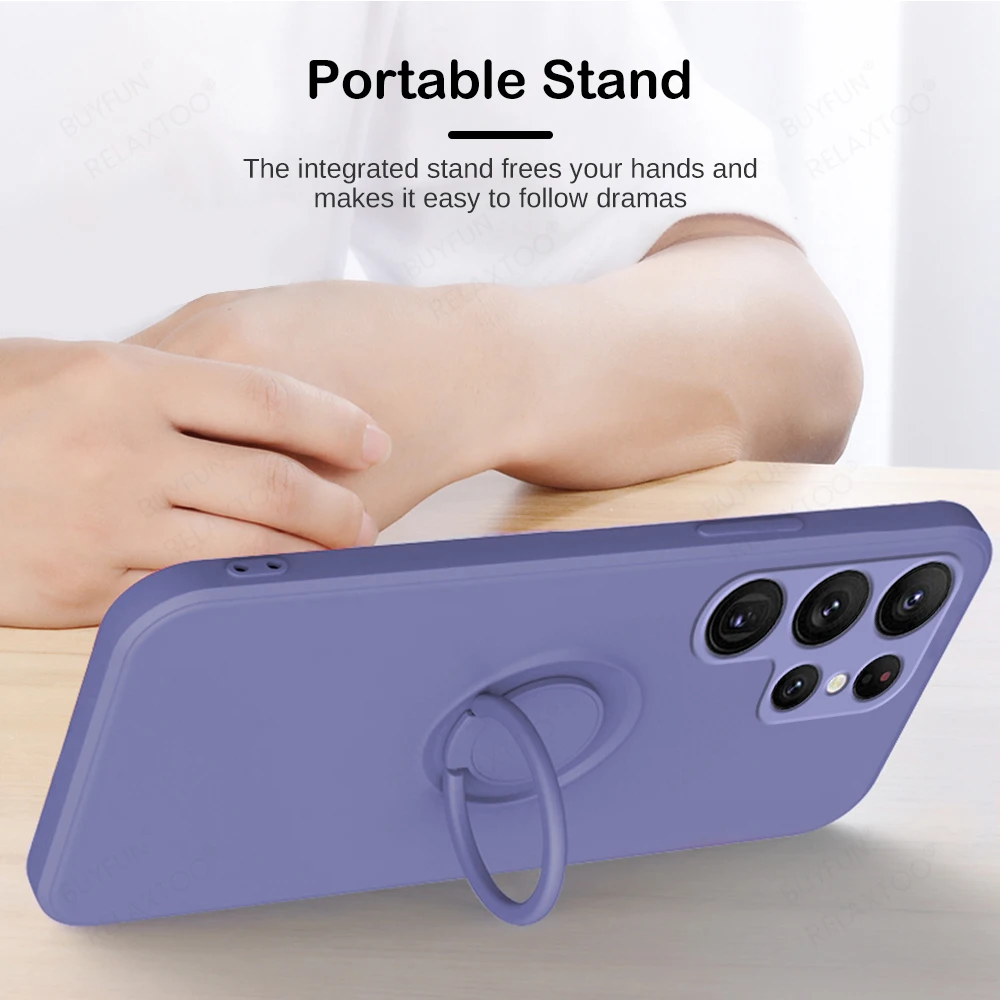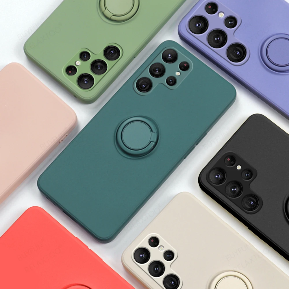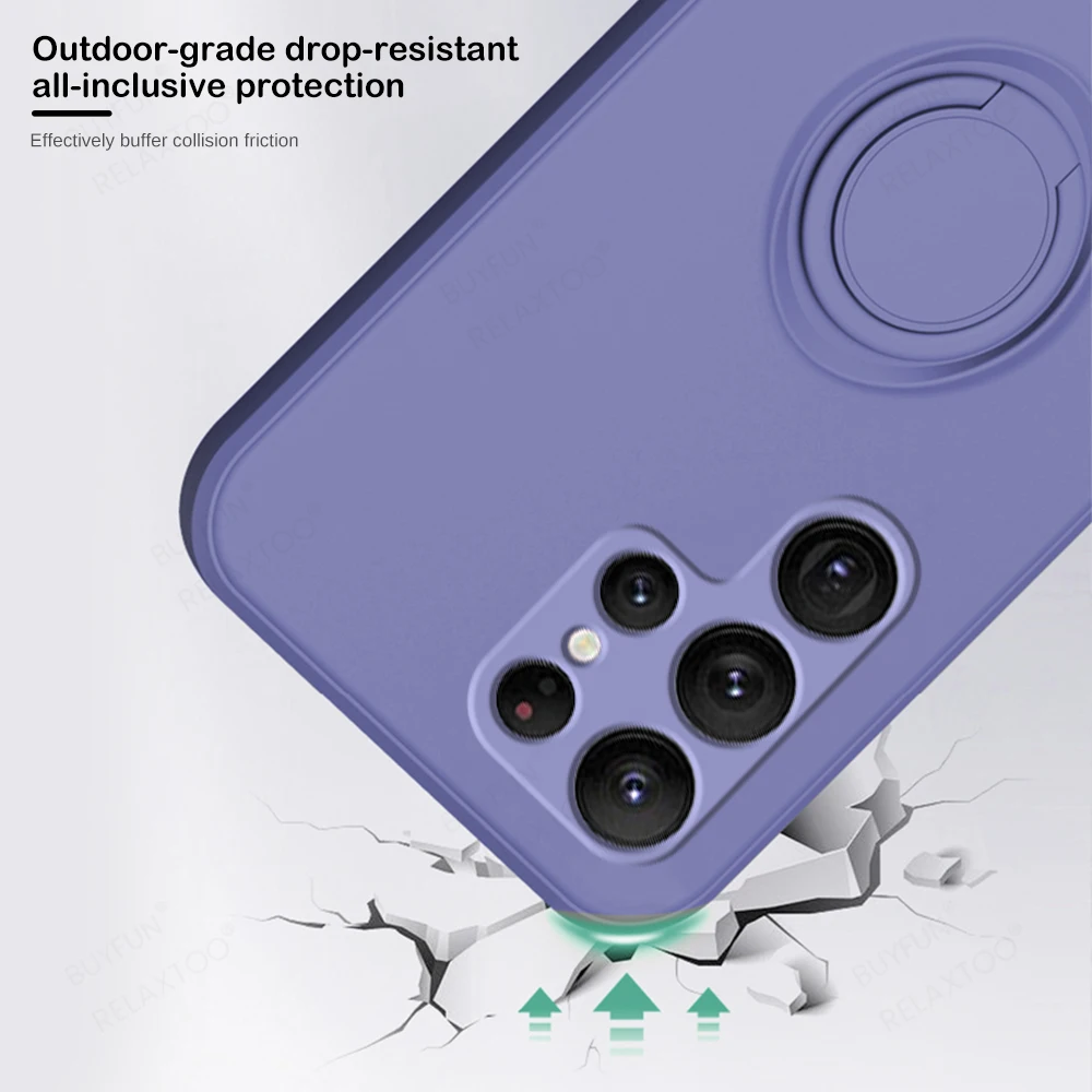 Comprar Funda de silicona líquida para Samsung Galaxy S 23 S23 Ultra Plus, carcasa blanda con soporte magnético, anillo a prueba de golpes y cordón