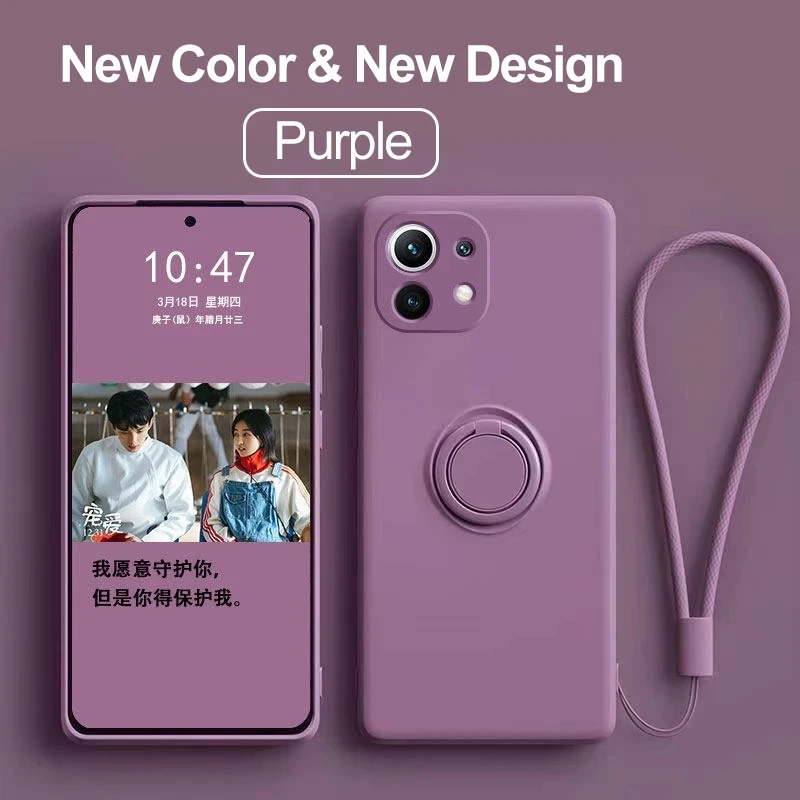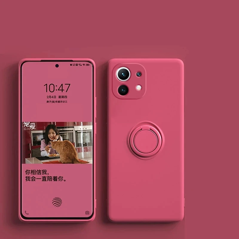 Comprar Funda de silicona líquida con soporte de anillo magnético para Xiaomi Mi 11