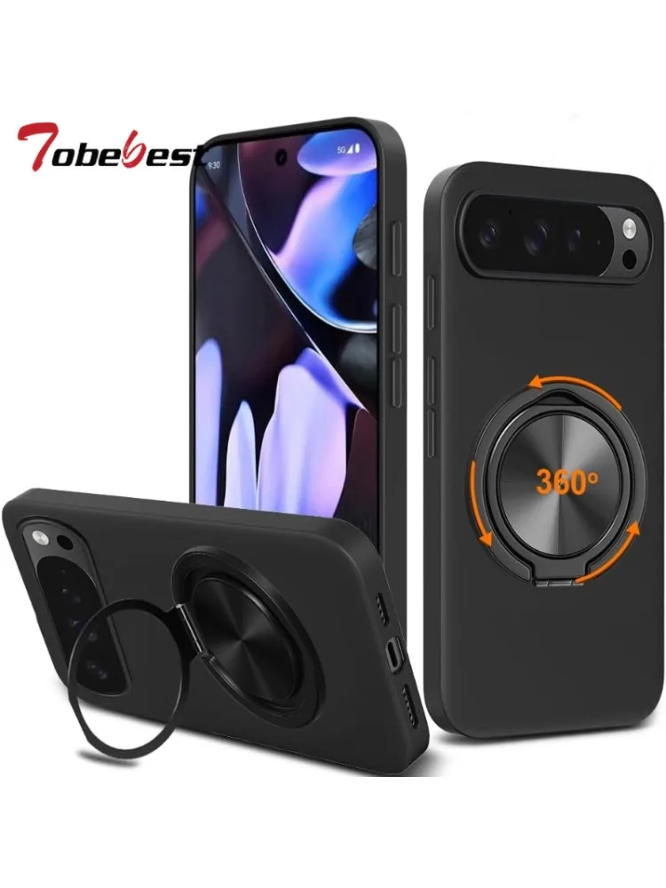 Funda de silicona líquida con soporte magnético giratorio de 360 grados para Google PIXEL10 9 9A 8 8A 7 7A 6 6A Pro XL, funda trasera suave