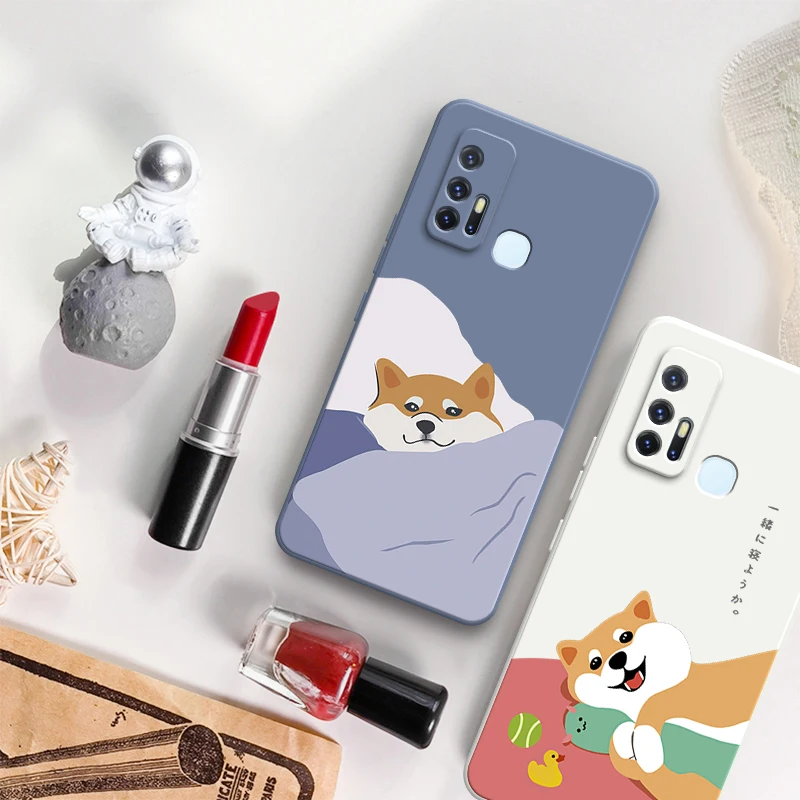 Funda de silicona líquida para VIVO, funda de dibujos animados para Z6 Z5 Z5X Z5i Z3 Z3X Z3i Z1X Z1i Z1 Pro Lite Nex 3 3S A S 5G, lindo perro perezoso Shiba Inu
