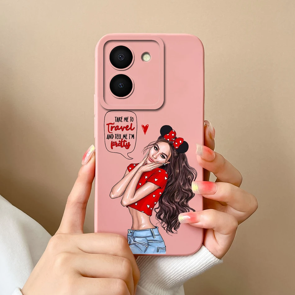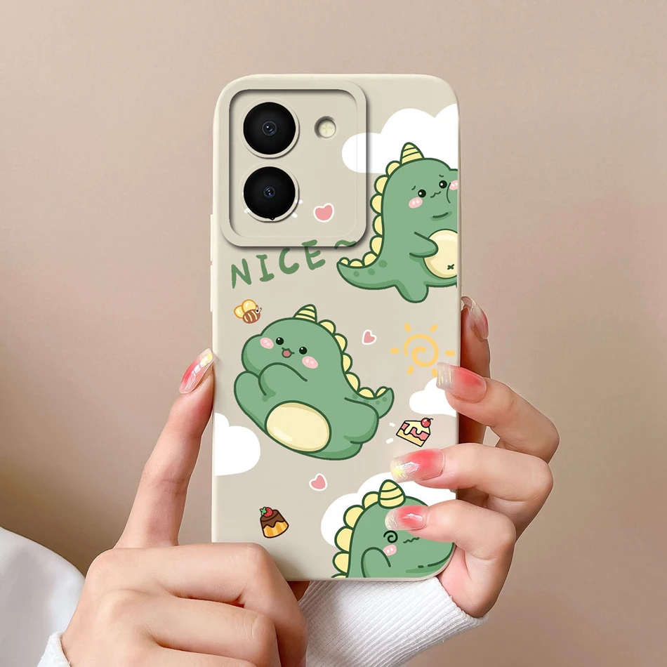 Comprar Funda de silicona líquida para Vivo Y36 4G 5G, carcasa protectora completa, suave, con diseño de oso encantador