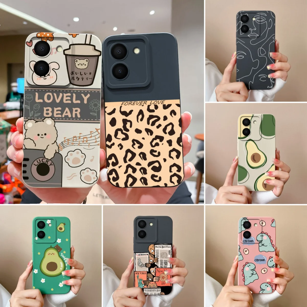 Comprar Funda de silicona líquida para Vivo Y36 4G 5G, carcasa protectora completa, suave, con diseño de oso encantador