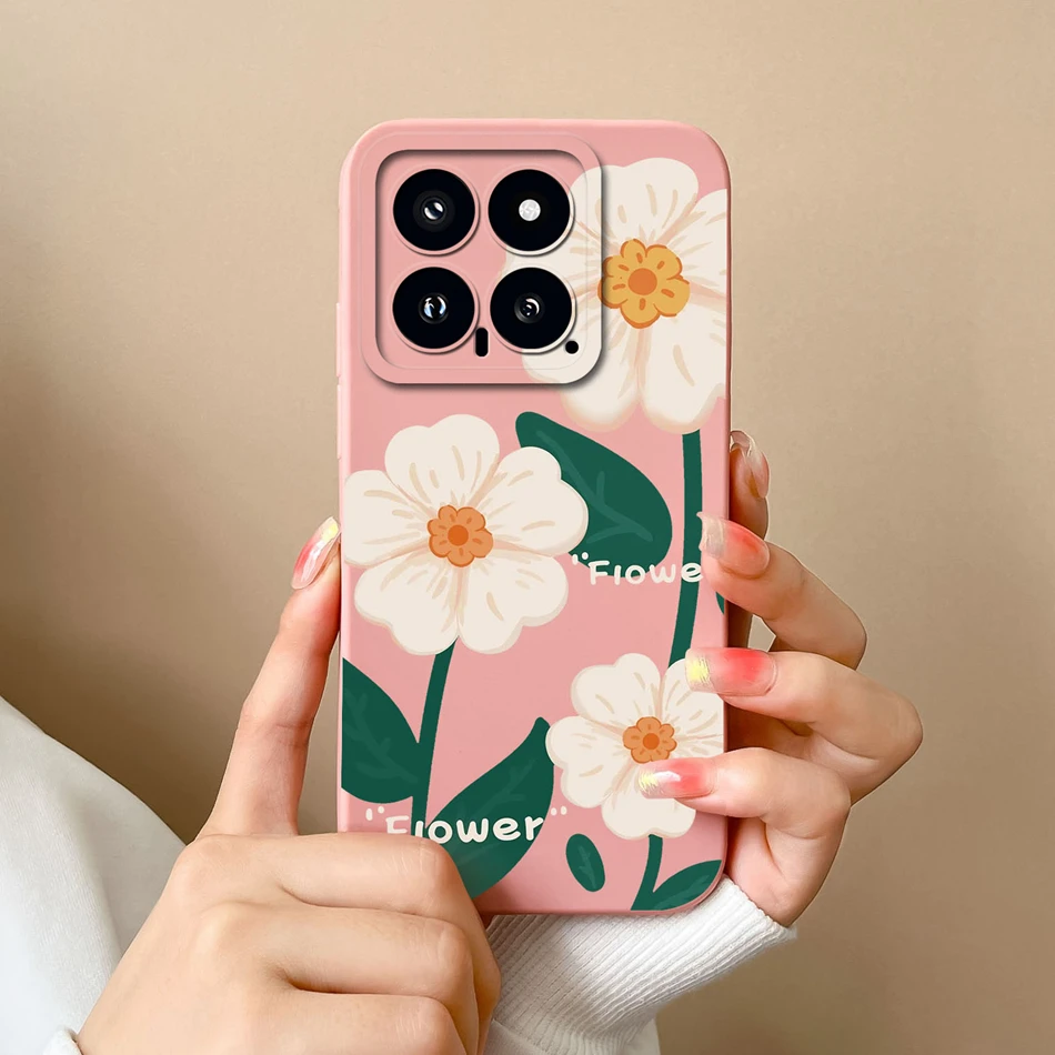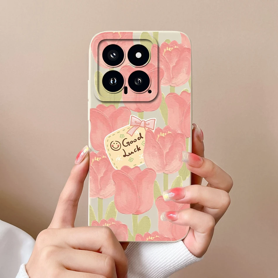 Comprar Funda de silicona líquida para Xiaomi 14 Pro, cubierta trasera antichoc para Xiaomi 14 14Pro, protección de lente de cámara romántica