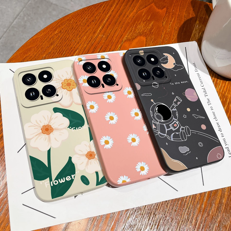 Comprar Funda de silicona líquida para Xiaomi 14 Pro, cubierta trasera antichoc para Xiaomi 14 14Pro, protección de lente de cámara romántica