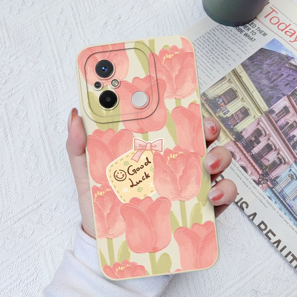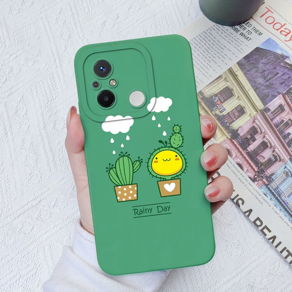 Funda para Xiaomi Redmi 12C 11A Cute Cartoon Soft Square Liquid Silicone Funda trasera a prueba de golpes para Redmi 11A 12 C 4G Funda Bumper