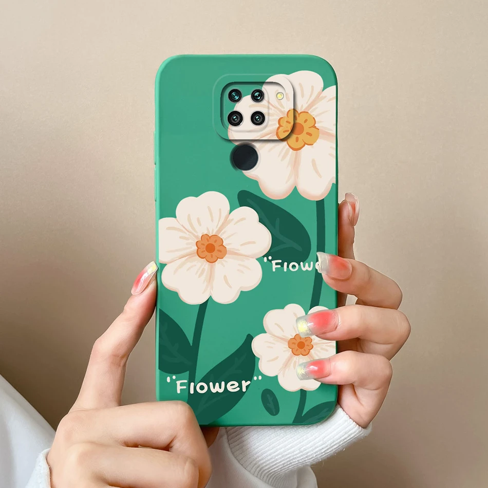 Comprar Funda de silicona líquida para Xiaomi Redmi Note 9 Pro, cubierta trasera de teléfono, protección de cámara romántica, suave