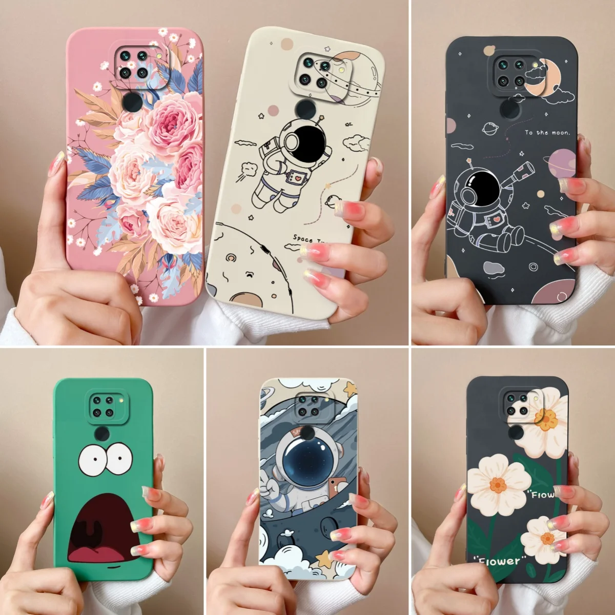 Comprar Funda de silicona líquida para Xiaomi Redmi Note 9 Pro, cubierta trasera de teléfono, protección de cámara romántica, suave