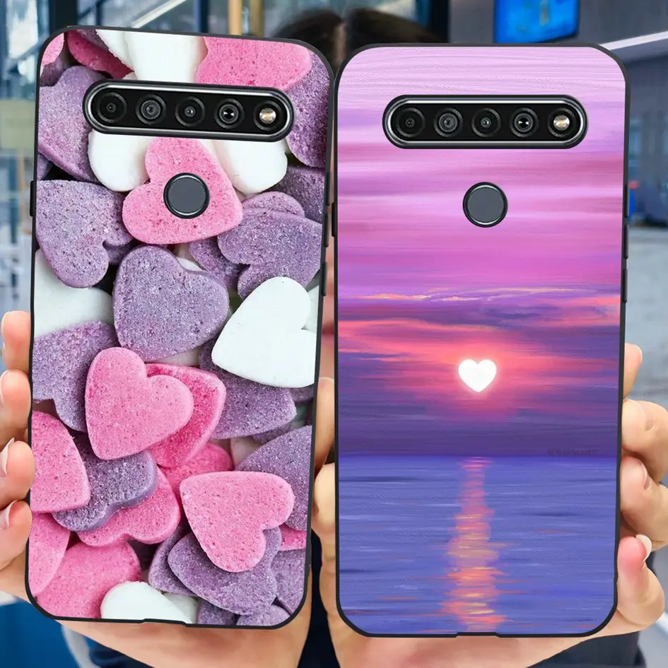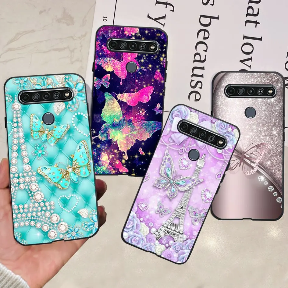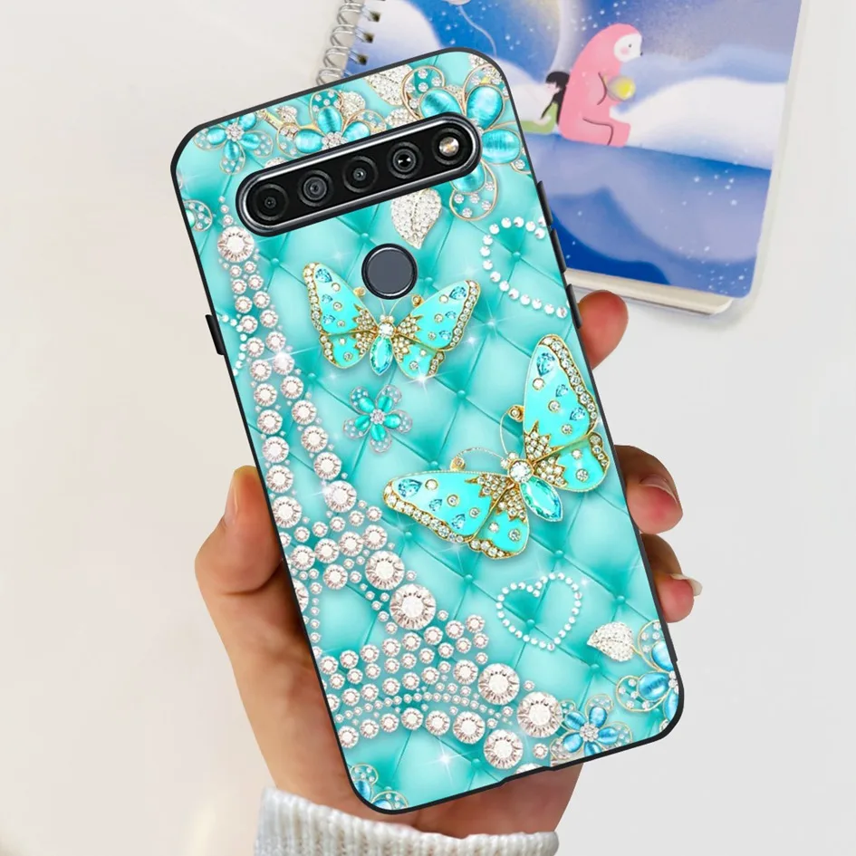 Funda para LG K61 2020, Funda a prueba de golpes con flores a la moda, Funda de silicona negra para LG K61 K 61 LGK61 LMQ630EAW