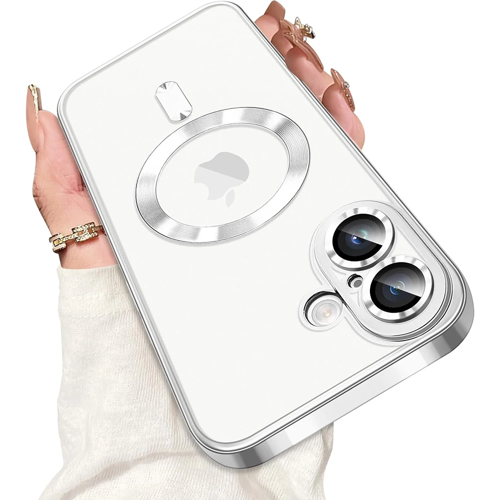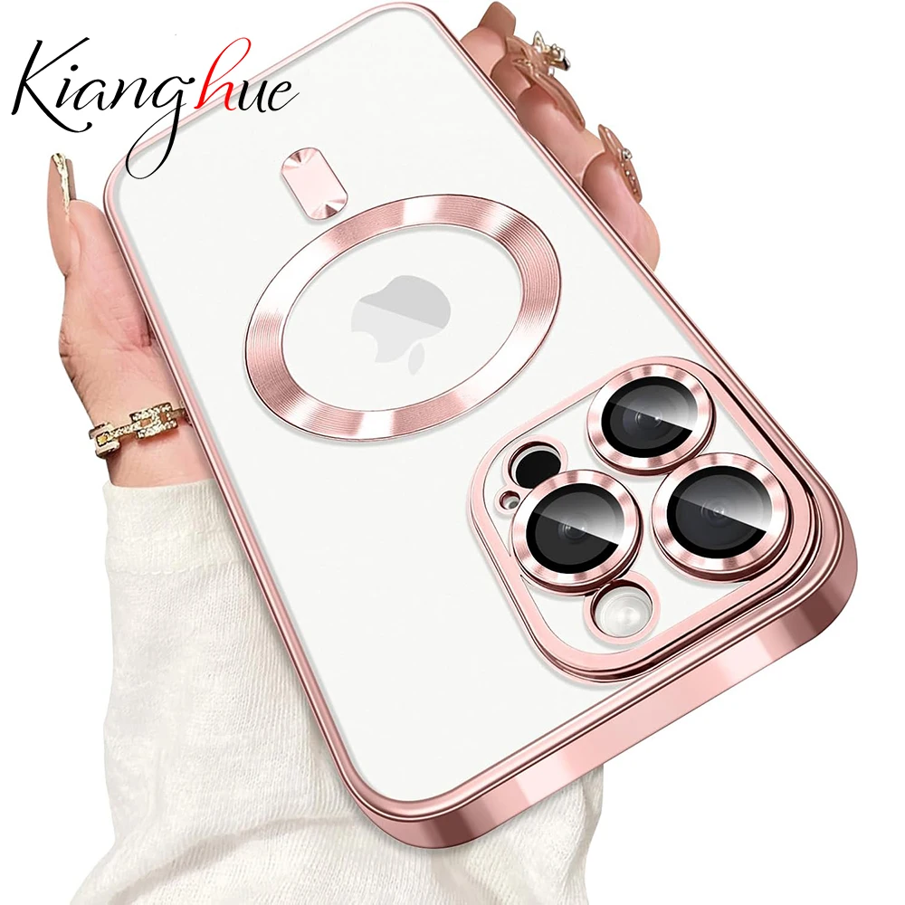 Comprar Funda de silicona de lujo para iPhone 16 15 14 13 12 11 Pro Max Plus fuerte magnético Magsafe suave transparente chapado carcasa ultrafina