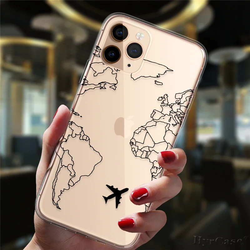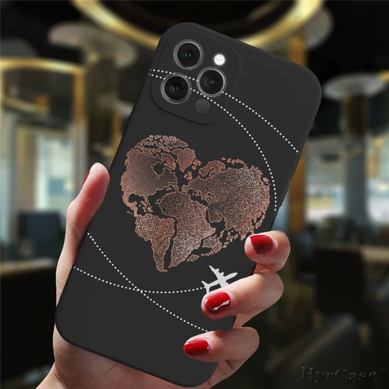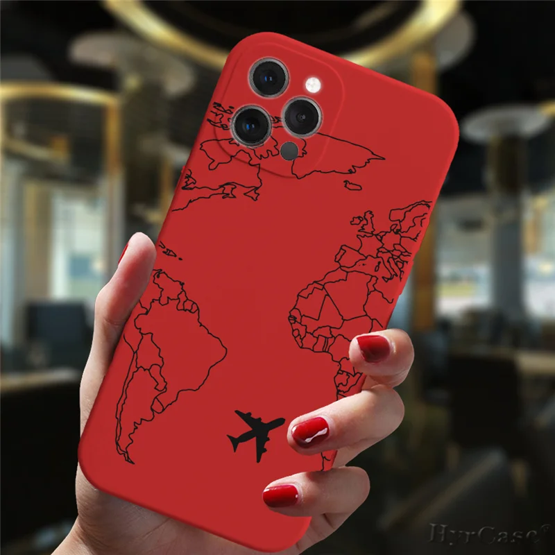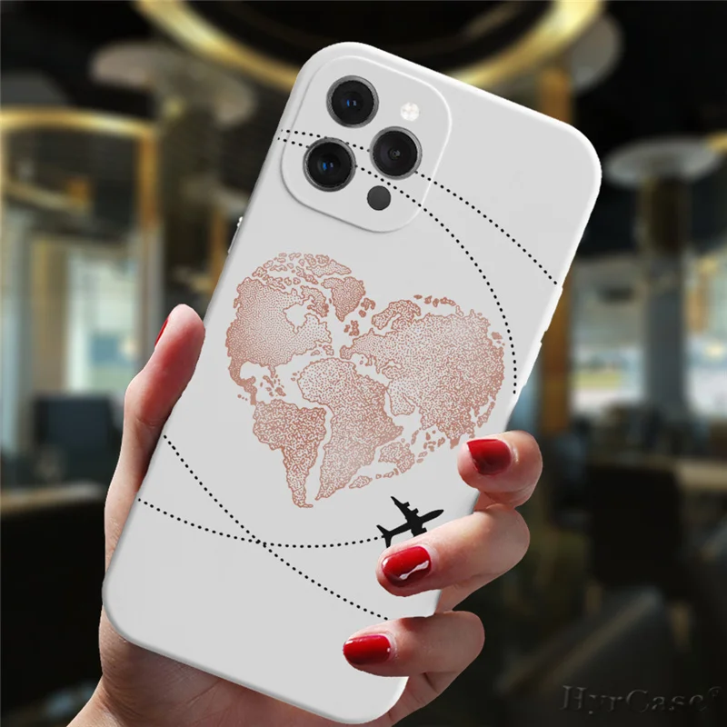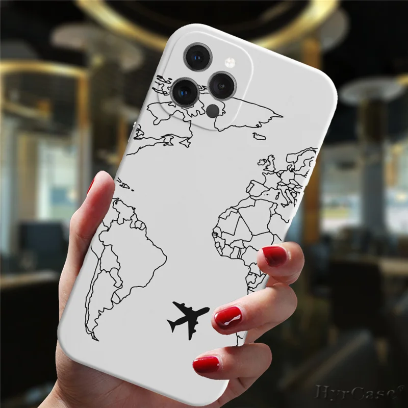 Funda de silicona para iPhone 13, 11, 12, 14 Pro Max Mini, 7, 8, 15 Plus, XS Max, XR, aviones populares, mapa del mundo, viaje, lujo, caramelo