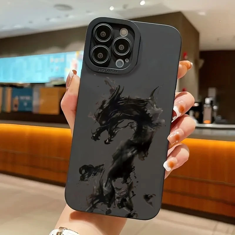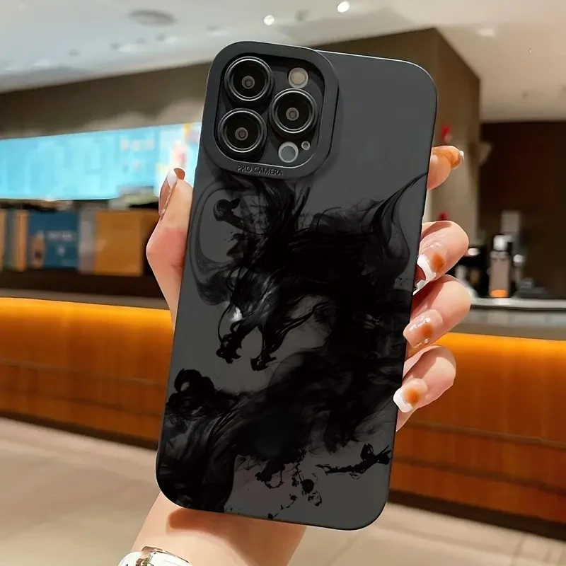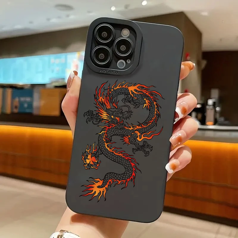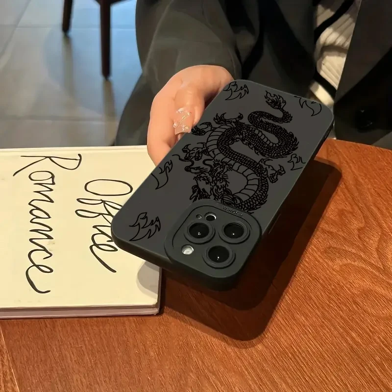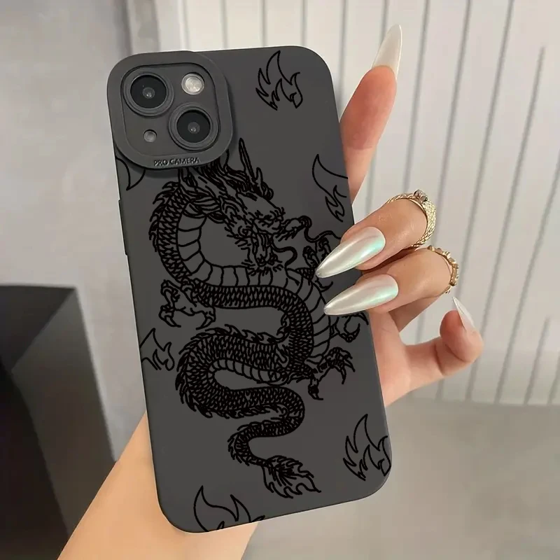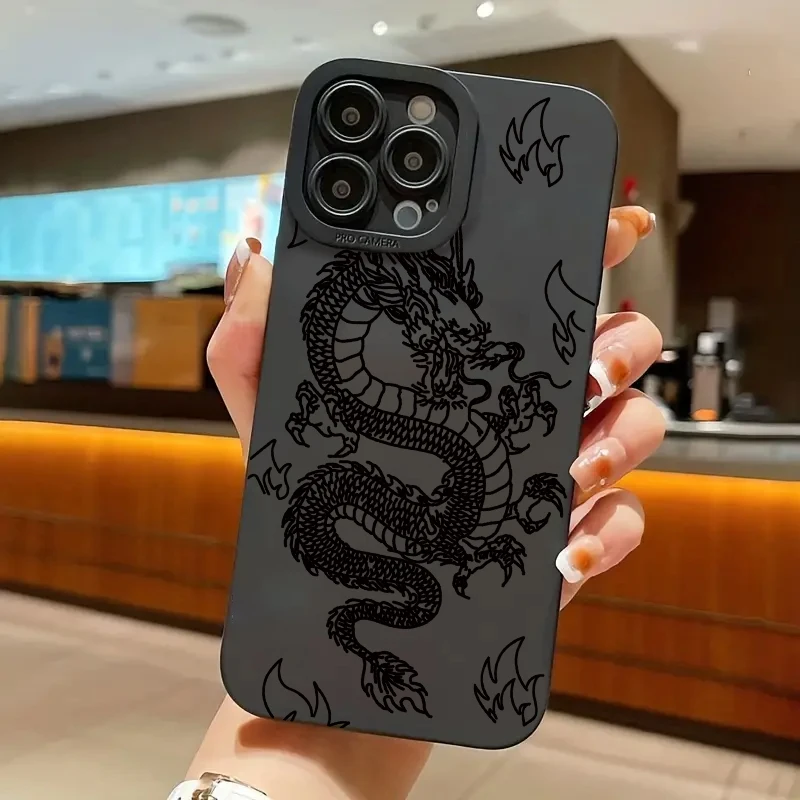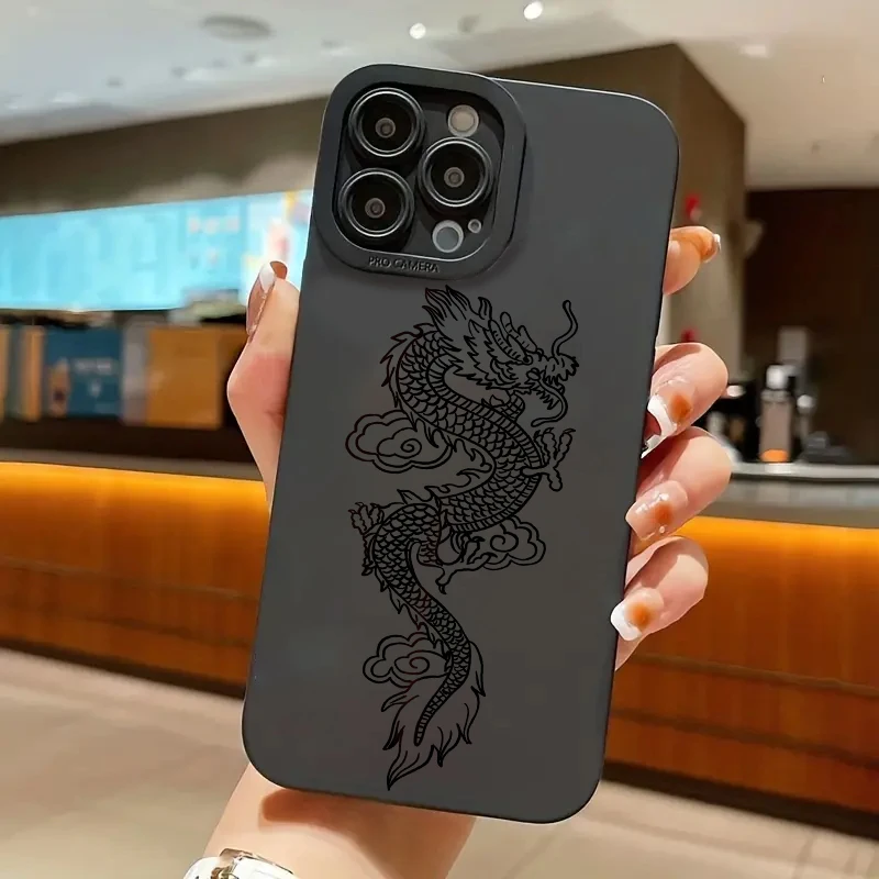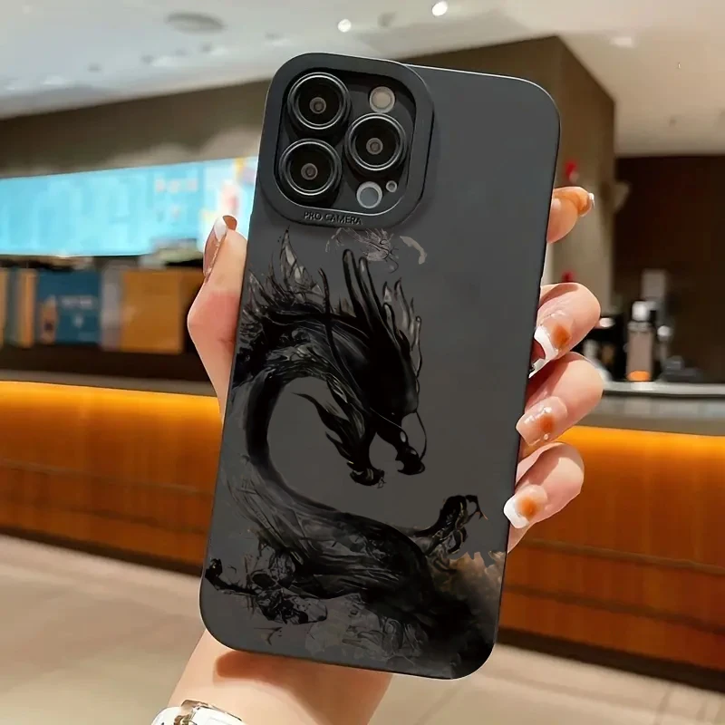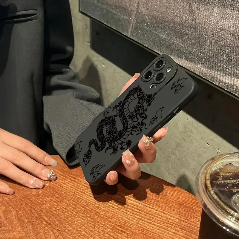 Funda de silicona mate con estampado de dragón negro para iPhone 15 Pro Max, fundas para iPhone 14, 13, 12, 11, XS, Max, XR, X, 7, 8, 15 Plus, cubierta de parachoques suave