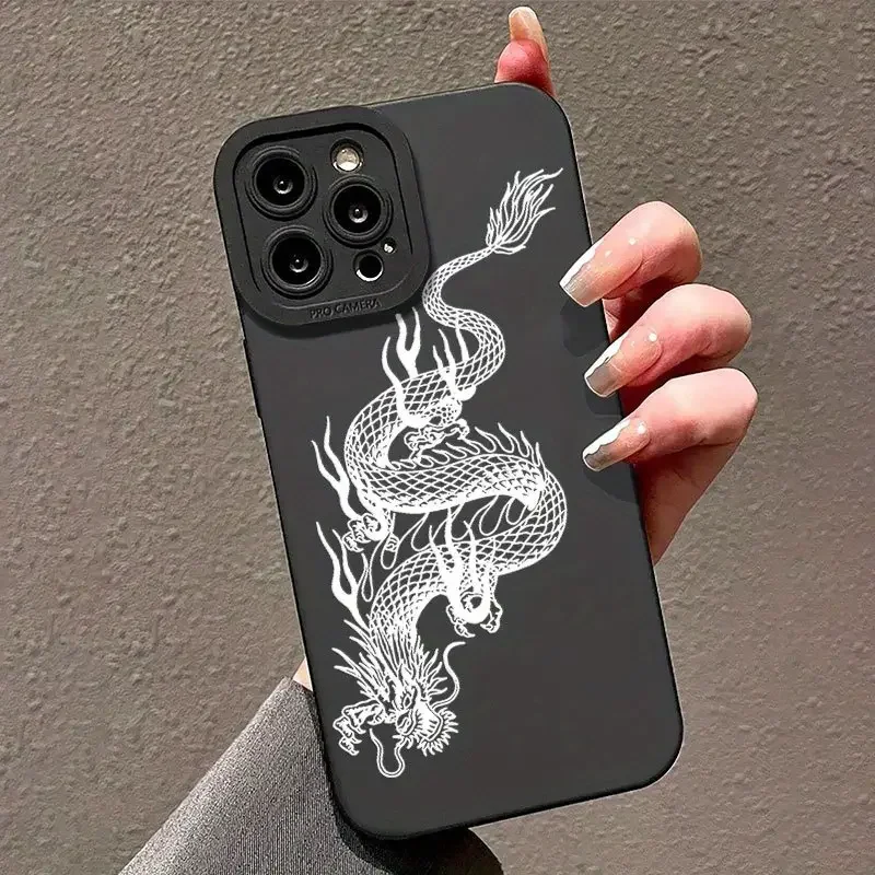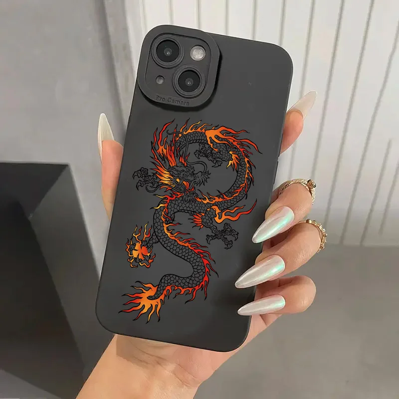 Comprar Funda de silicona mate con estampado de dragón negro para iPhone 15 Pro Max, fundas para iPhone 14, 13, 12, 11, XS, Max, XR, X, 7, 8, 15 Plus, cubierta de parachoques suave