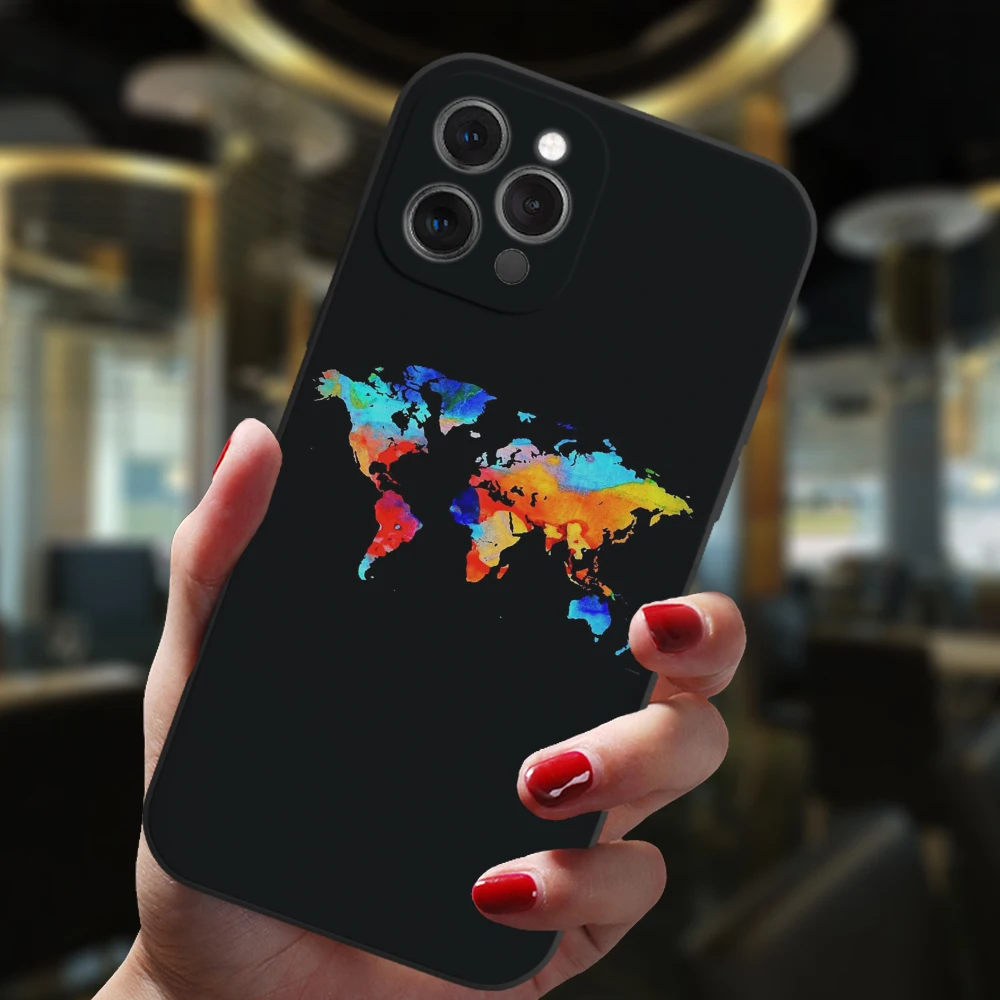 Comprar Funda de silicona mate para iPhone, carcasa Popular con mapa del mundo, amor, corazón, parejas, modelos 13, 12, 11, 14 Pro Max, Mini, 15 Plus
