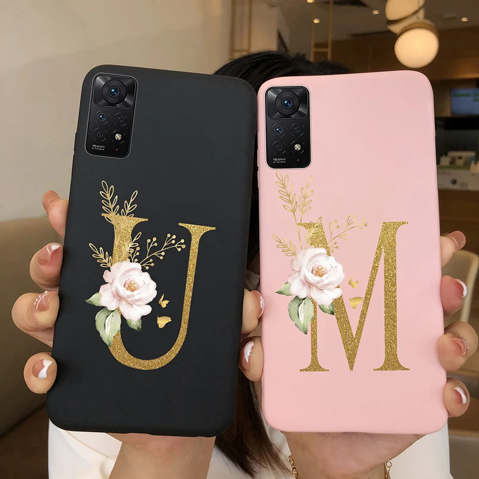 Comprar Funda de silicona mate para Xiaomi 11 i 11i HyperCharge 5G Flower 26Letter, funda trasera de teléfono para Xiaomi 11i 11i Hyper Charge Bumper