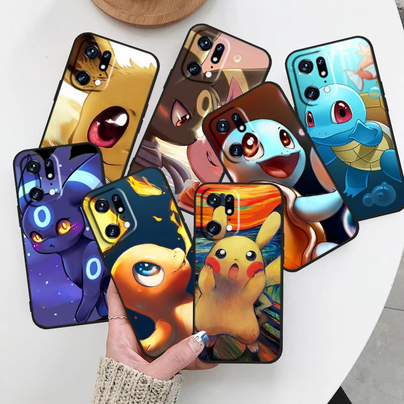 Comprar Funda de silicona negra con dibujos de elfos de Pokémon para OPPO Find X6, X5, X3, X2, Neo Lite, Reno 9, 8, 7, 7Z, 7SE, 6, 5 Pro, 4G, 5G