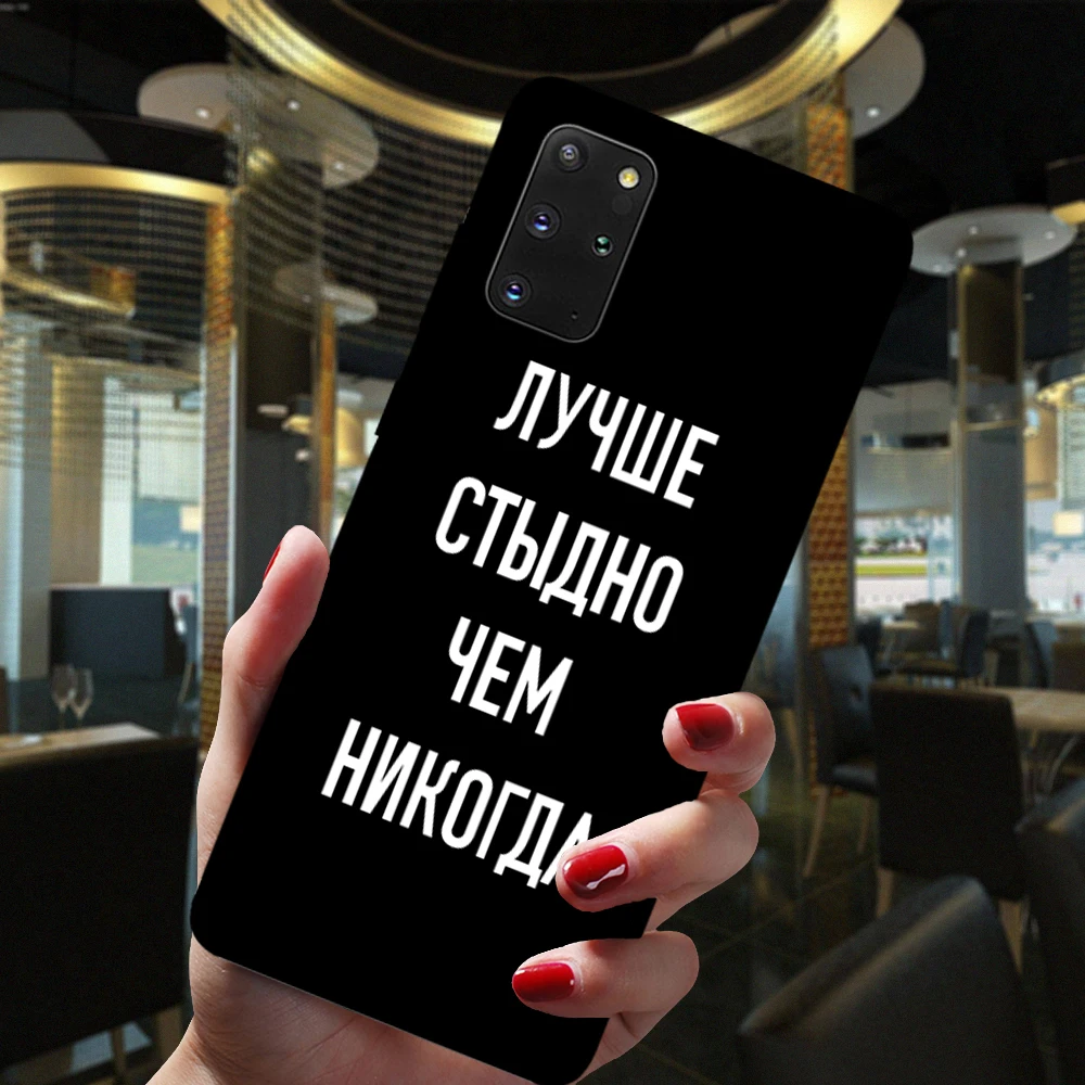 Palabras de moda eslogan de cita rusa funda de silicona negra para Samsung NOTE 20 Ultra 5G Note 10 Lite 9 8 J330 J530 J4 J6 Plus
