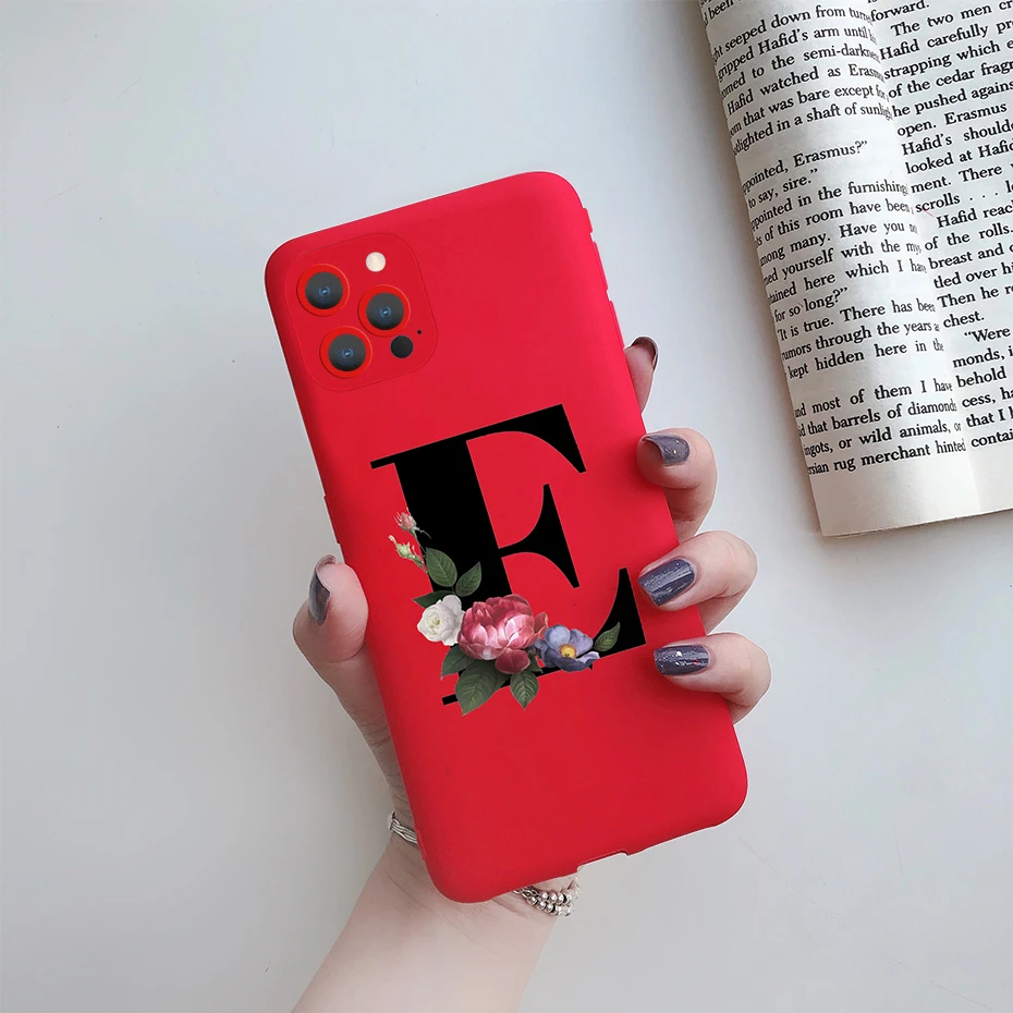 Funda de teléfono de silicona con nombre personalizado, monograma, letra inicial, para iPhone 11 Pro 12 Pro Max X XR XS Max, funda trasera de TPU suave con flores rojas