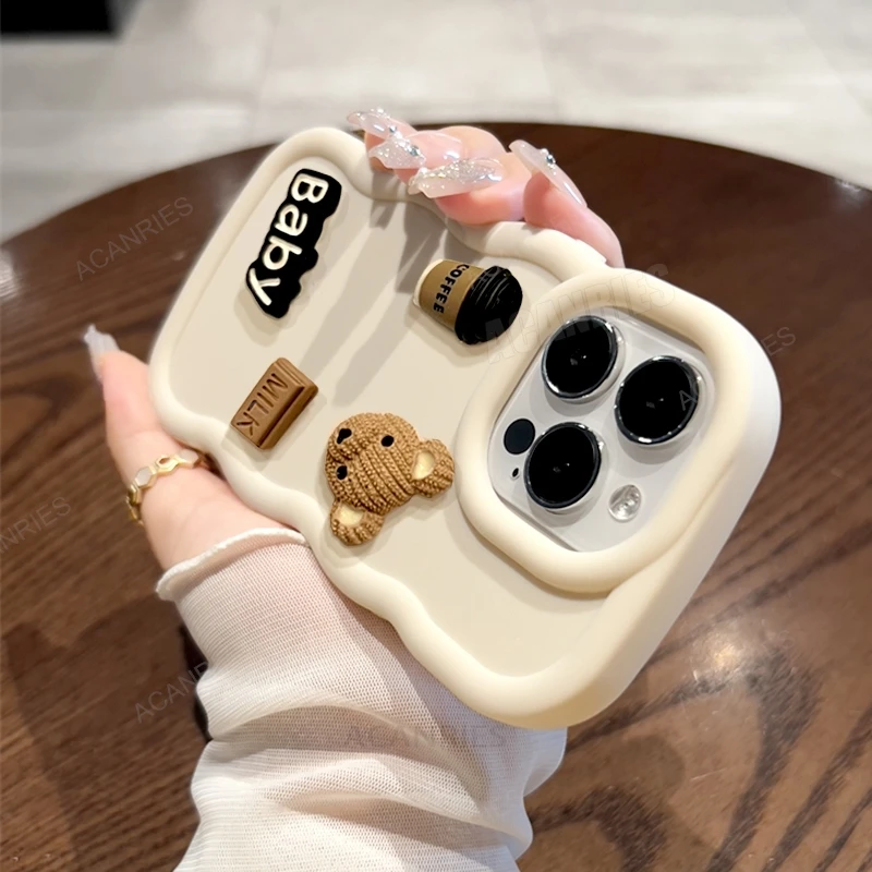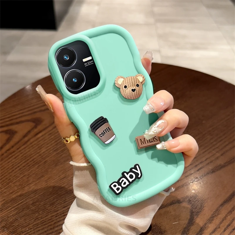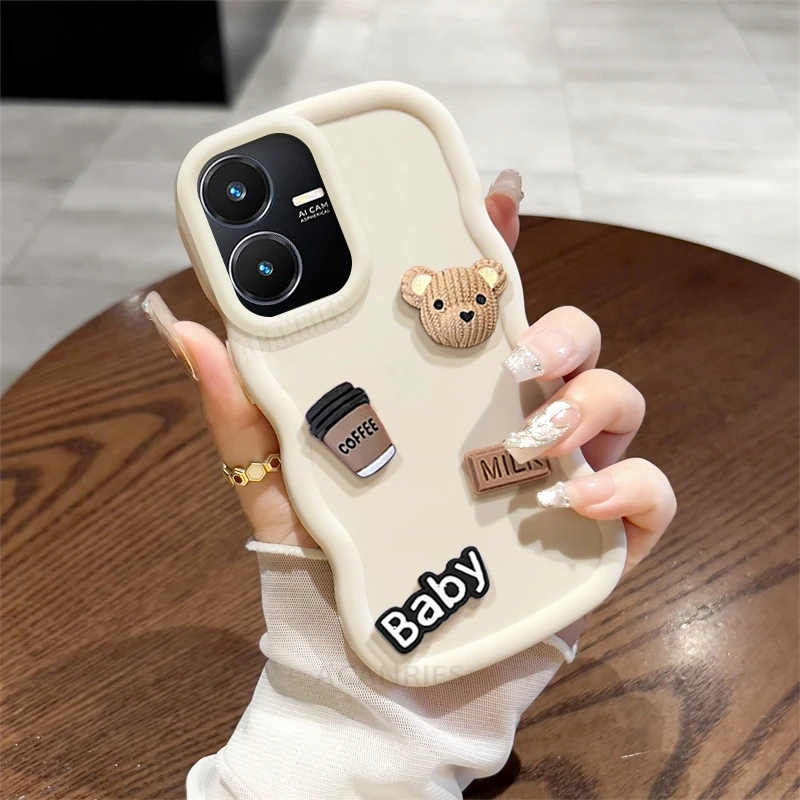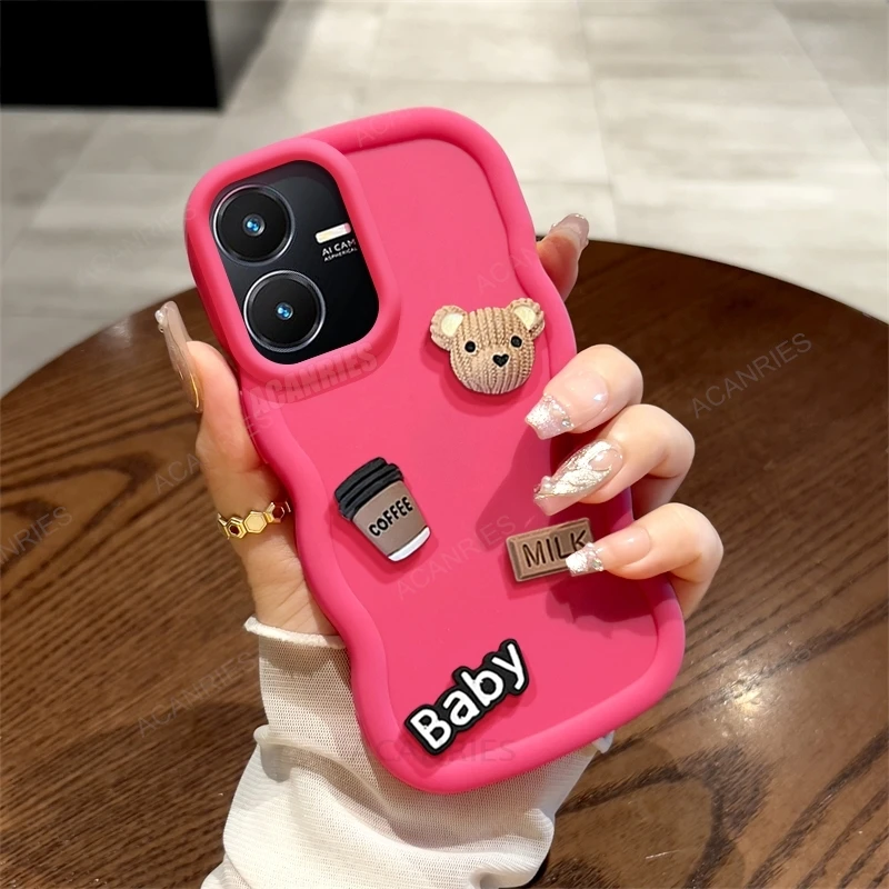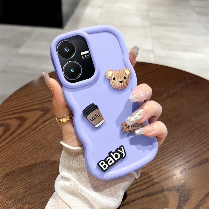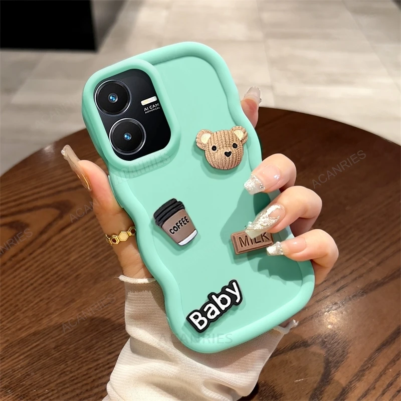 Funda de silicona ondulada con dibujos animados de oso 3D para Vivo Y22 Y22s Y22t Y16 Y17 Y21 Y20 Y30 Y50 Y35 Y38 V27 V29 V30 funda blanda a prueba de golpes