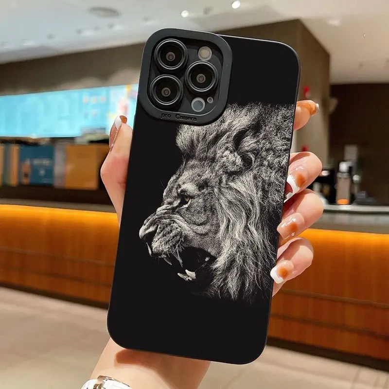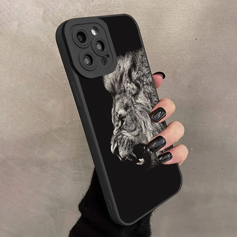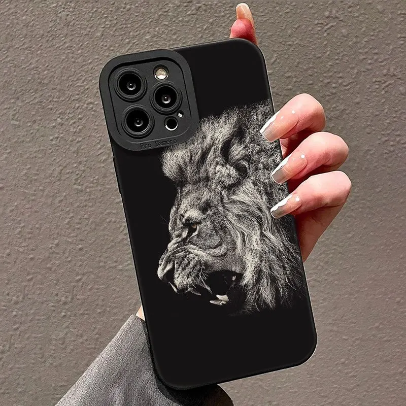 Funda de silicona con patrón gráfico de León para iPhone, carcasa suave a prueba de golpes para modelos 15 Pro Max, 14, 13, 12, 11, XS, X, XR, 7, 8 Plus, SE 2020