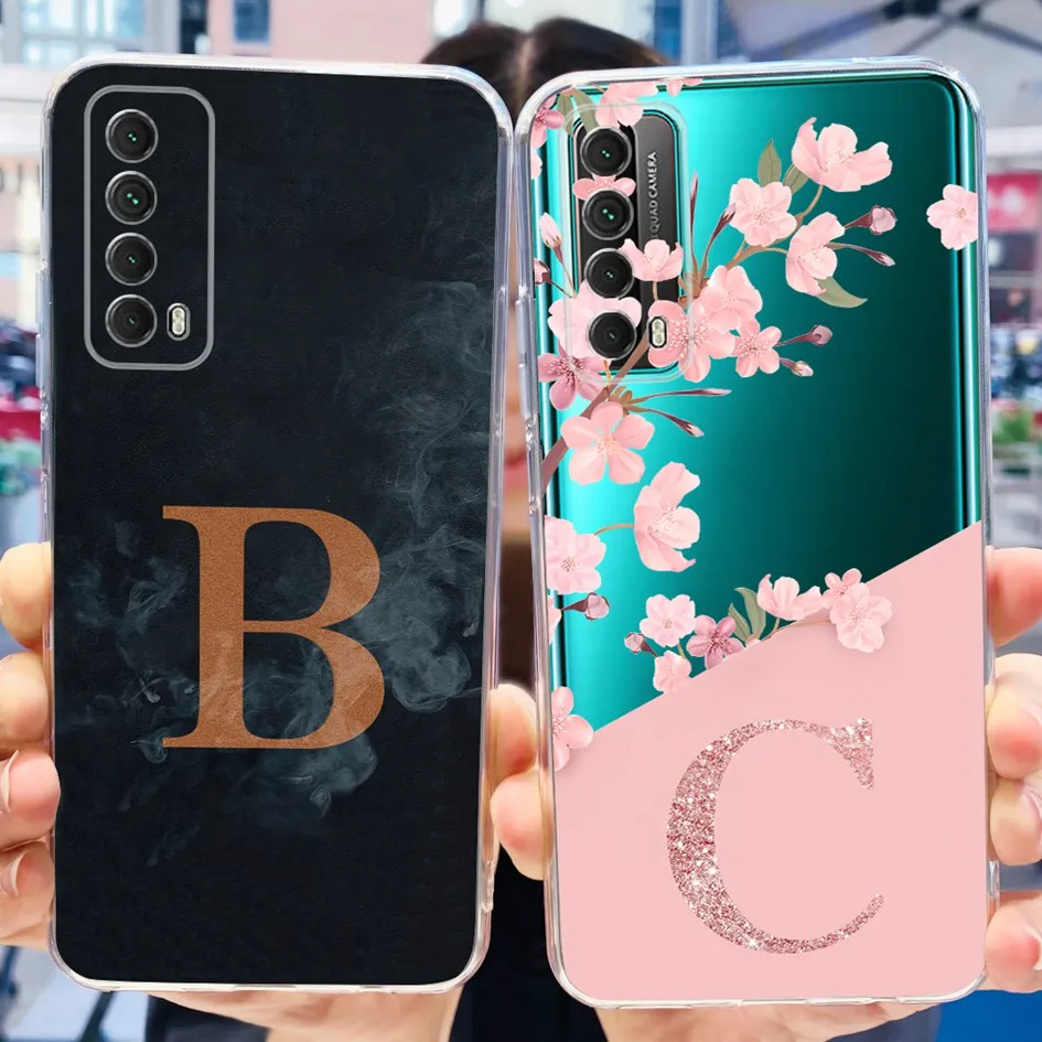 Funda de silicona para Huawei P Smart 2021, funda de teléfono de TPU transparente con letras de flores a la moda para Huawei Y7A 2020 Capa