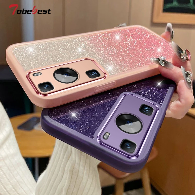 Funda de silicona con protector de cámara con purpurina brillante para Huawei P60 P50 P40 P30 Pro Funda trasera suave