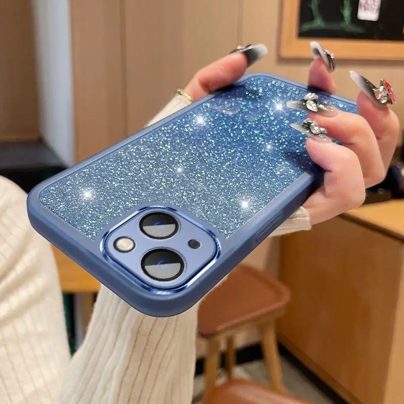 Bling Glitter Camera Protector Funda de silicona para iPhone 16 Pro Max Plus Funda