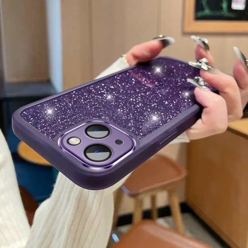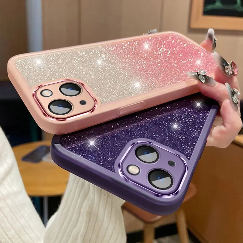 Comprar Funda de silicona con purpurina para iphone, Protector de cámara, 16 Pro Max Plus