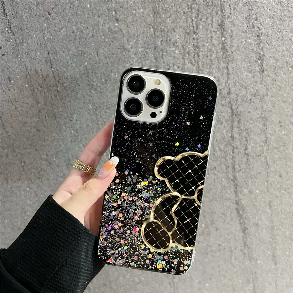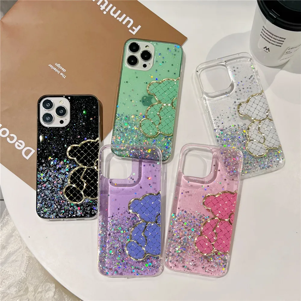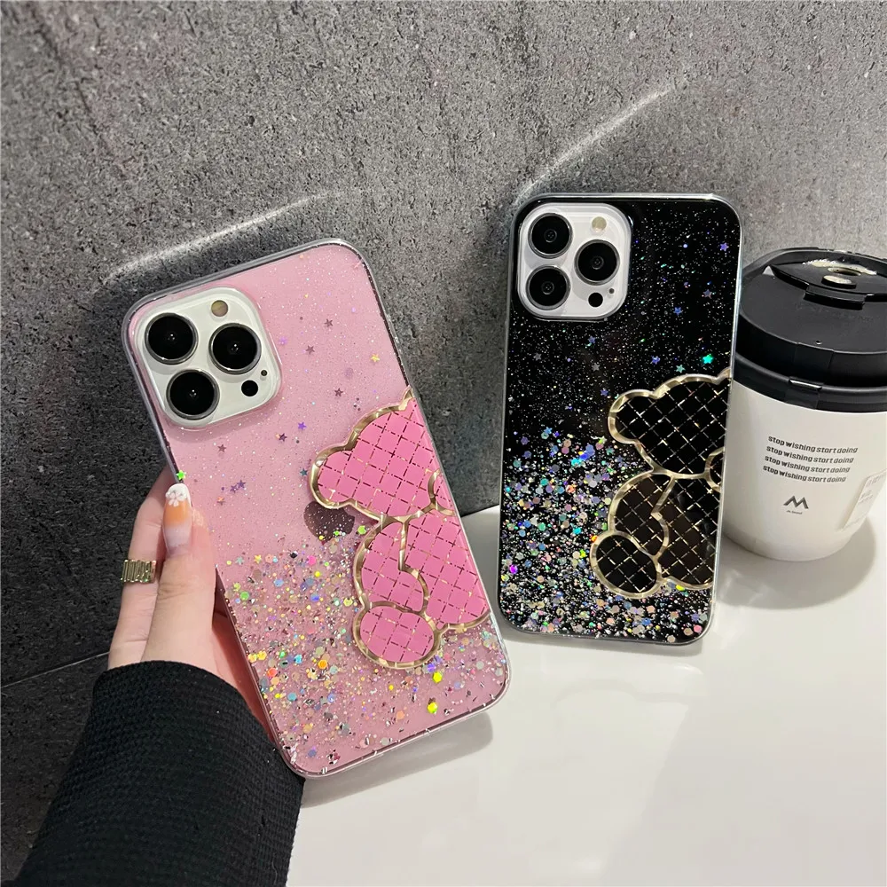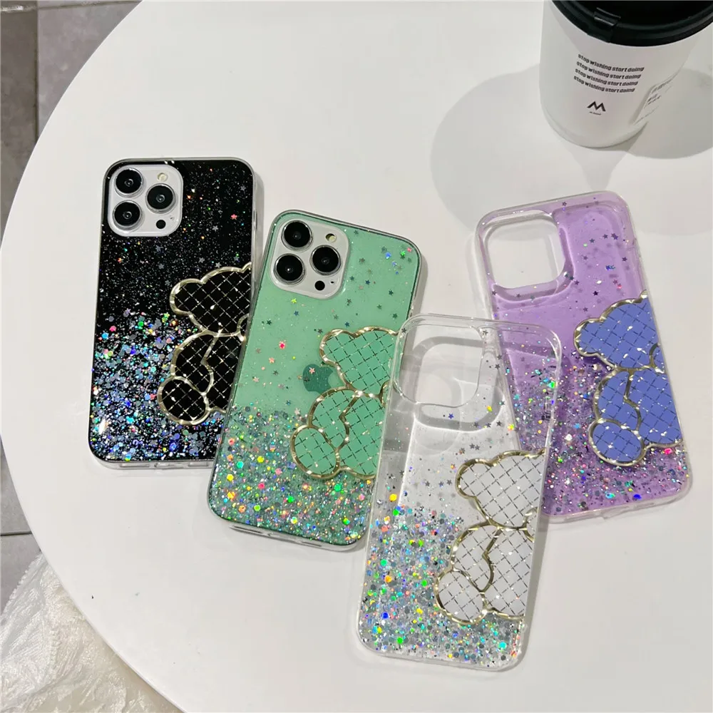 Funda de silicona con purpurina brillante de oso bonito para Xiaomi Redmi Note 11 11S 10 10S 9 9S 9A 9C 11T 11 Lite 5G NE POCO X3 X4 Pro NFC