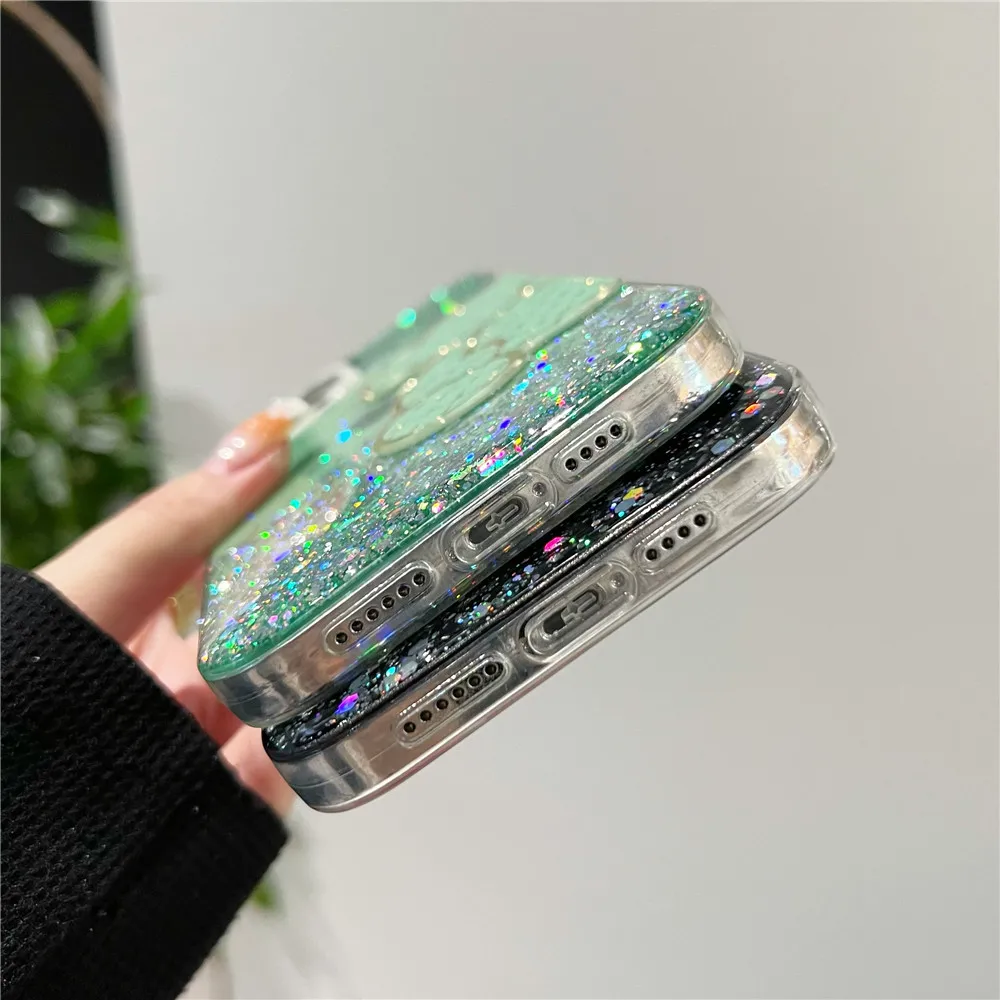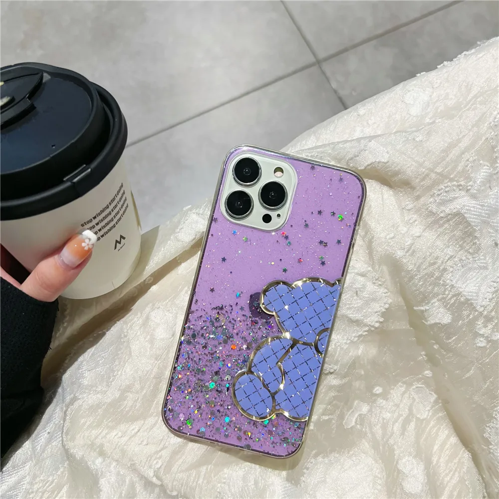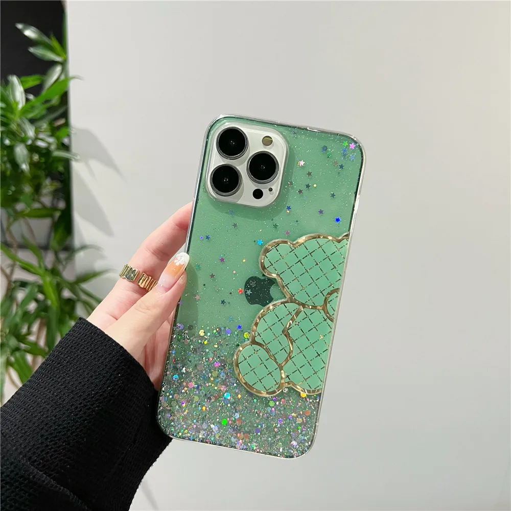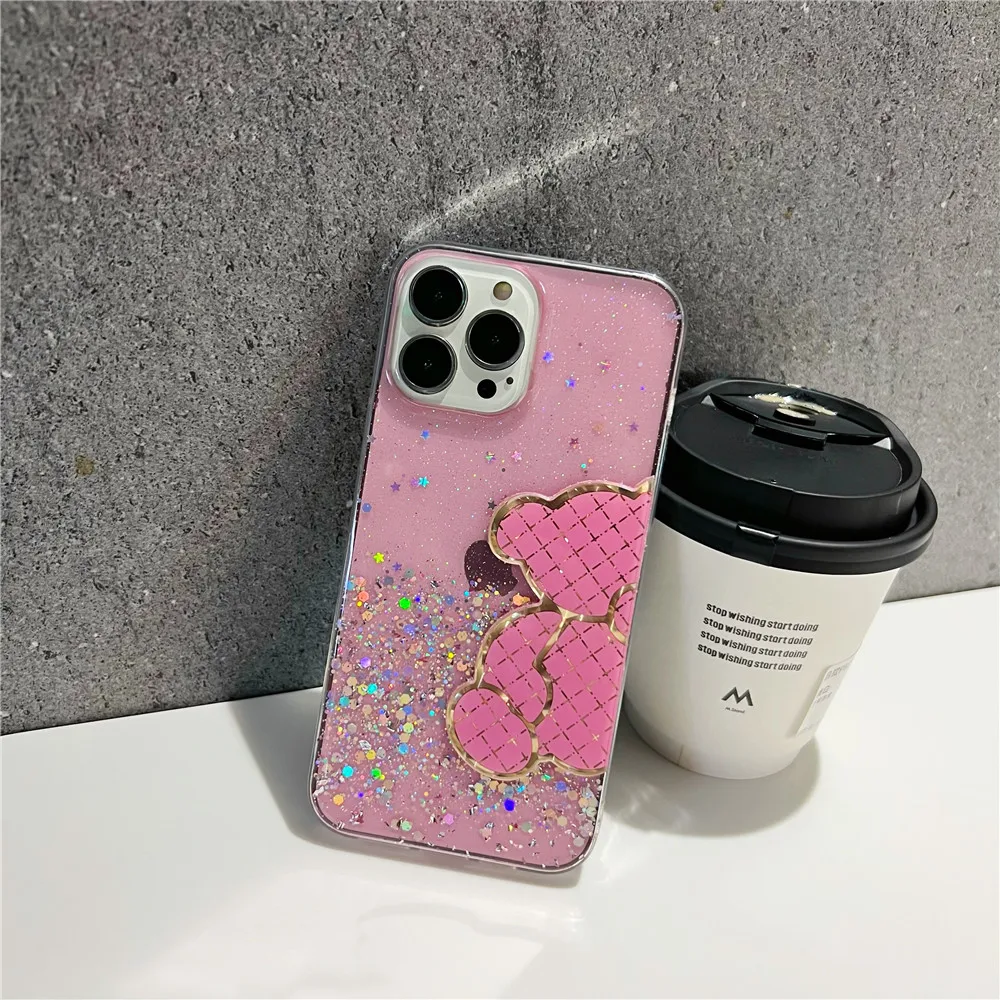 Funda de silicona con purpurina brillante de oso bonito para Xiaomi Redmi Note 11 11S 10 10S 9 9S 9A 9C 11T 11 Lite 5G NE POCO X3 X4 Pro NFC
