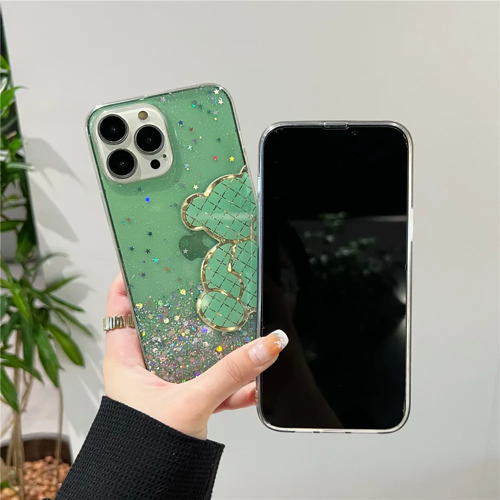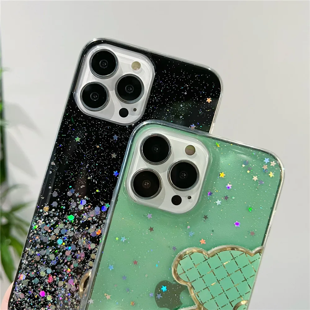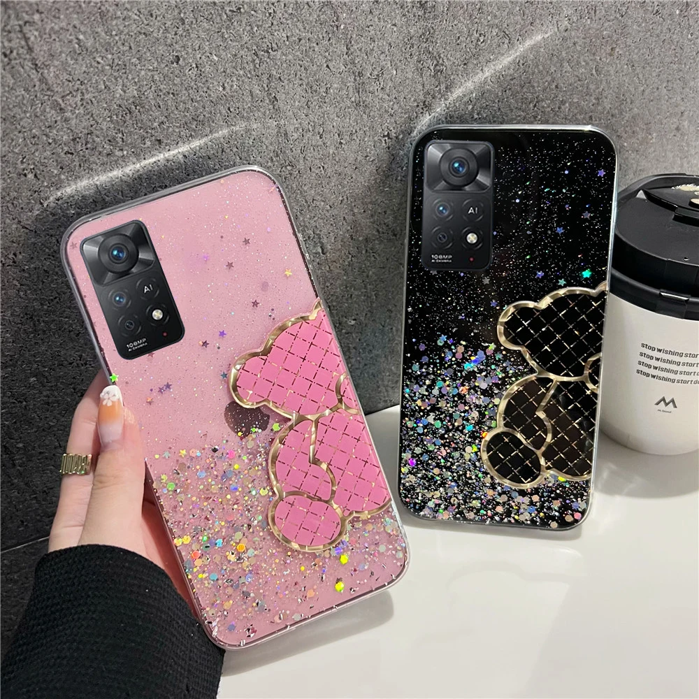 Funda de silicona con purpurina brillante de oso bonito para Xiaomi Redmi Note 11 11S 10 10S 9 9S 9A 9C 11T 11 Lite 5G NE POCO X3 X4 Pro NFC