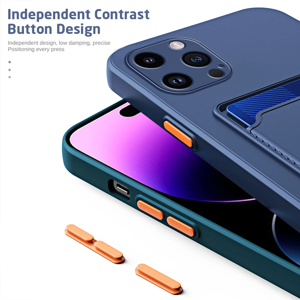 Comprar Funda de silicona con ranura para tarjeta para iPhone, carcasa trasera a prueba de golpes para iPhone 15 Pro Max, iPhone 15 Plus, iPhone 15 Pro, 15Pro, 15 Pro Max 2023