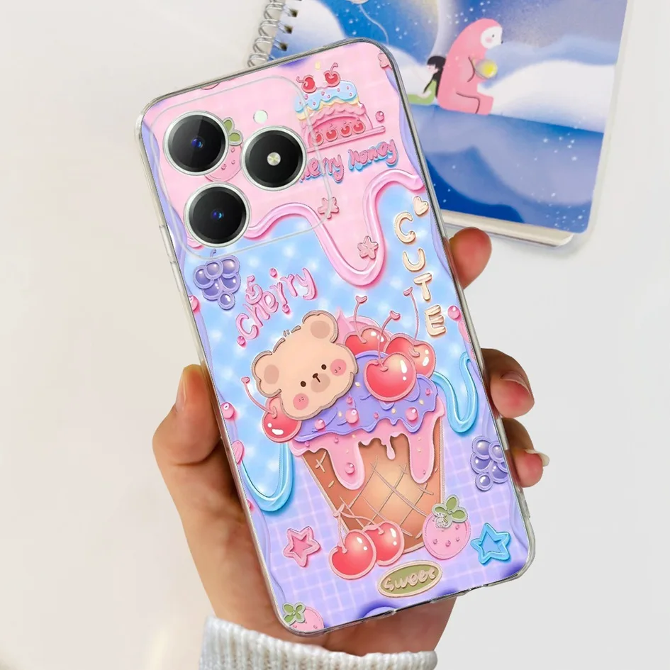 Para 6,75 C63 4G funda RMX3939 funda de teléfono transparente de silicona suave con flores populares de "para Realme C61 C 61 RealmeC63 4G parachoques