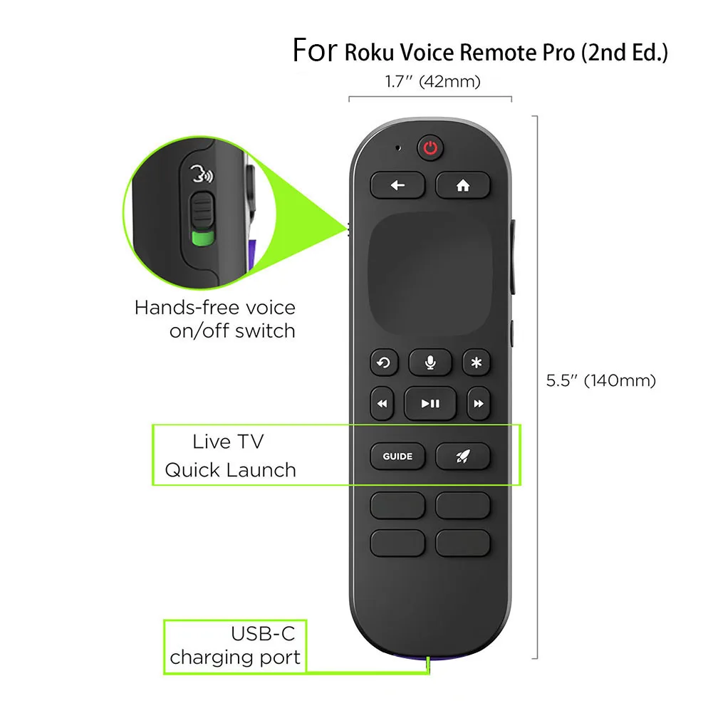Modelos aplicables: Compatible con el control remoto Roku Voice Remote Pro (2a edición) RCB1R (2024)