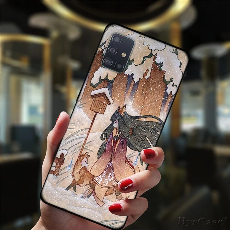Abedules el deseo de Kitsune Fox ciervo Yokai caso para Samsung A51 A71 A52S A72 A73 A53 A33 A13 A22 A32 A12 A31 A50 A70 cubierta de silicona