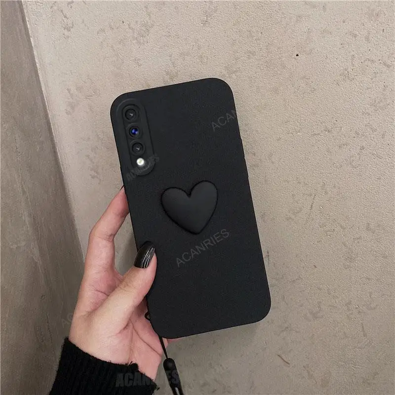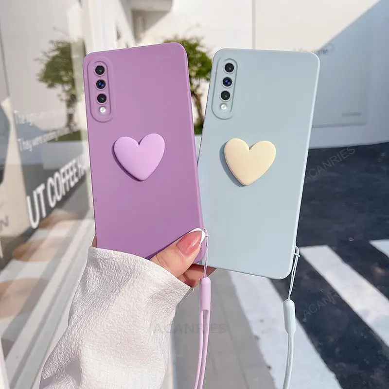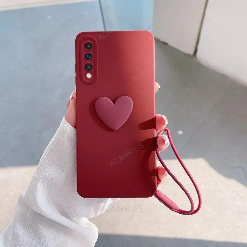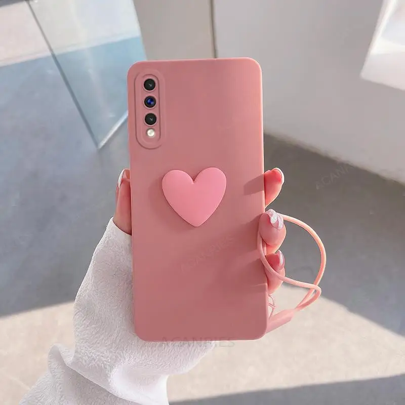 A50s lindo 3D amor corazón funda de silicona para Samsung Galaxy A50 A30s A70 A20s A21s A51 A71 4G A31 A20 A30 cordón correa de muñeca cubierta