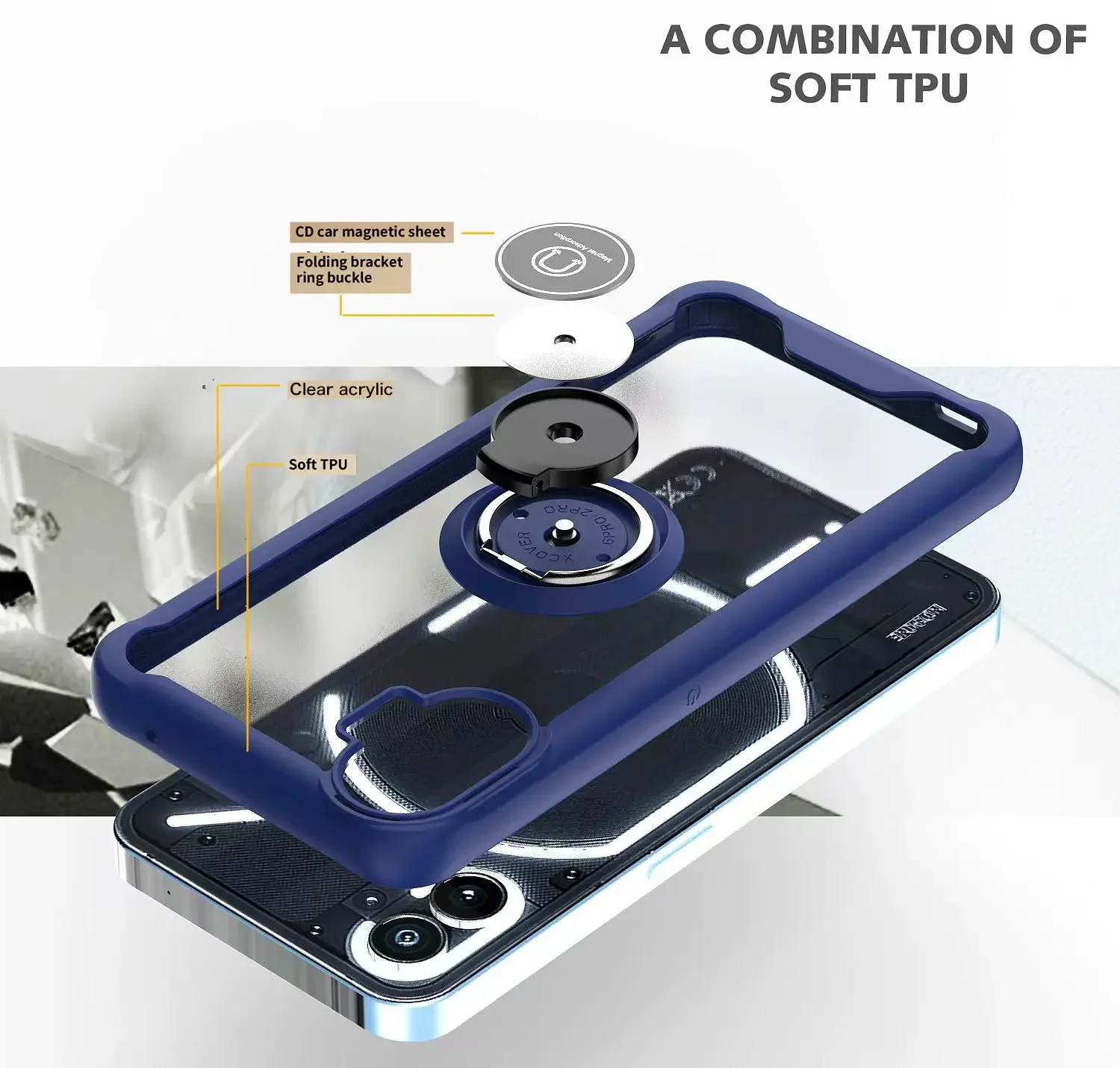 Comprar Funda de silicona con soporte de anillo para coche, cubierta trasera de PC a dura prueba de golpes, Impresión de teléfono, ligera