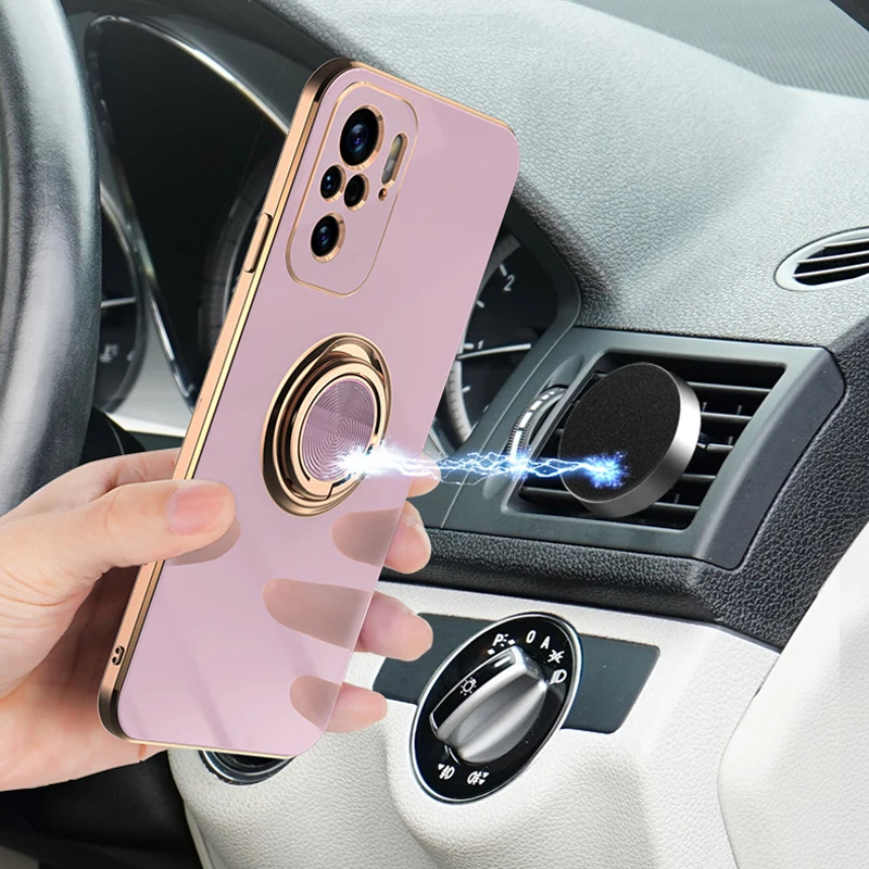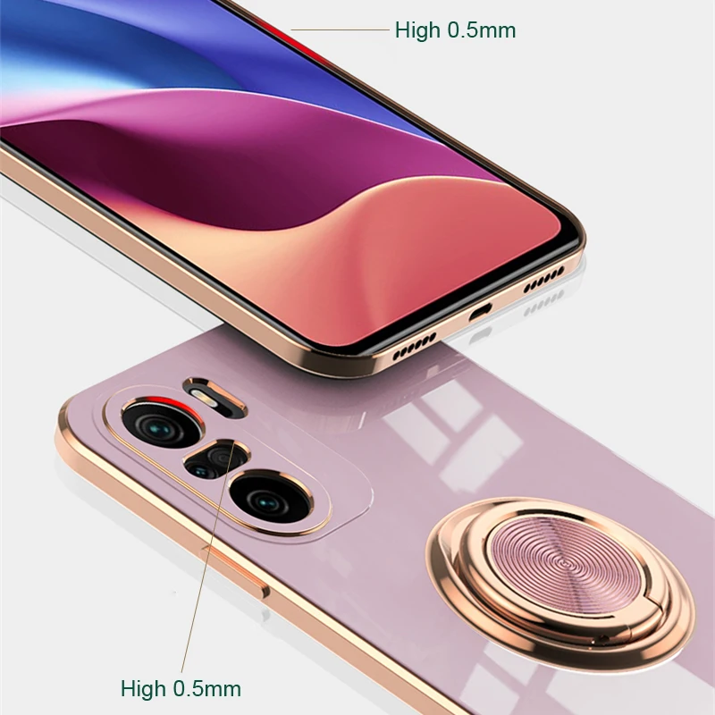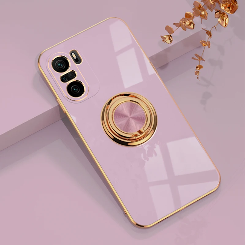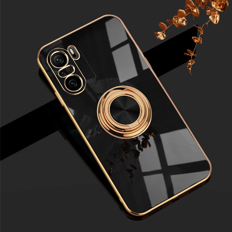 Funda de silicona con soporte de anillo para teléfono móvil, carcasa suave con revestimiento para Xiaomi 10T, 10T, 11, POCO F3, Redmi Note 10 Pro Max, 10Pro