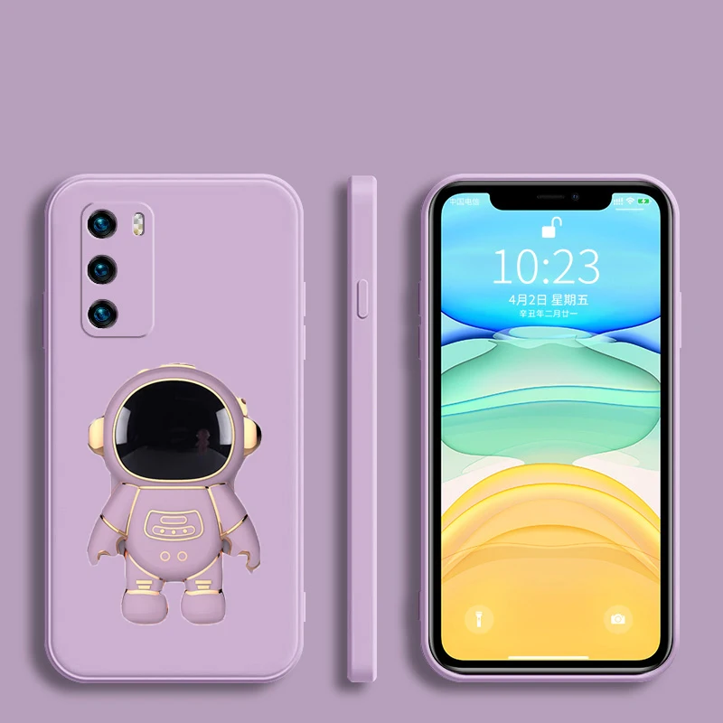 Comprar Funda de silicona con soporte de astronauta para Huawei P50 P40 P30 P20 Lite Pro, funda trasera suave con soporte