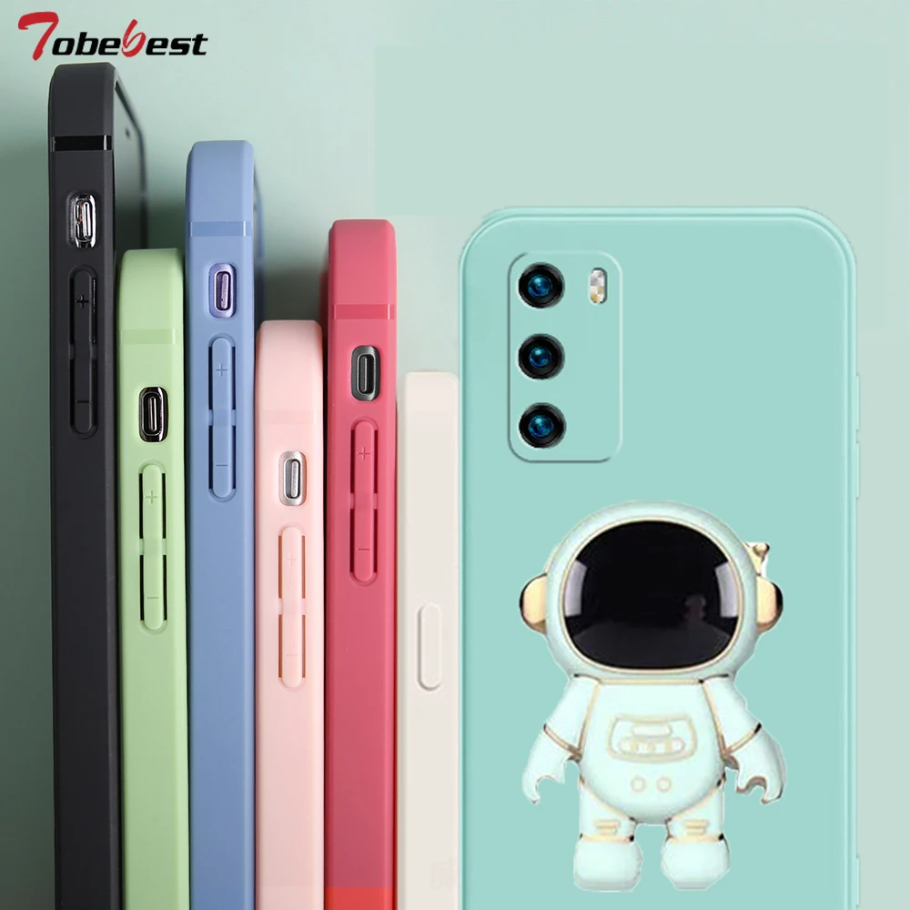 Funda de silicona con soporte de astronauta para teléfono Huawei P50 P40 P30 P20 Lite Pro, funda trasera suave con soporte