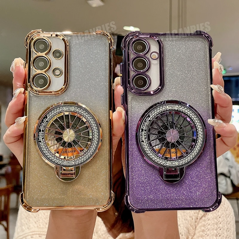 Funda de silicona con soporte giratorio chapado A 52 32 53 73 para Samsung Galaxy A52 A32 A53 A13 A23 A33 A73 4g 5g A16 A15 A55