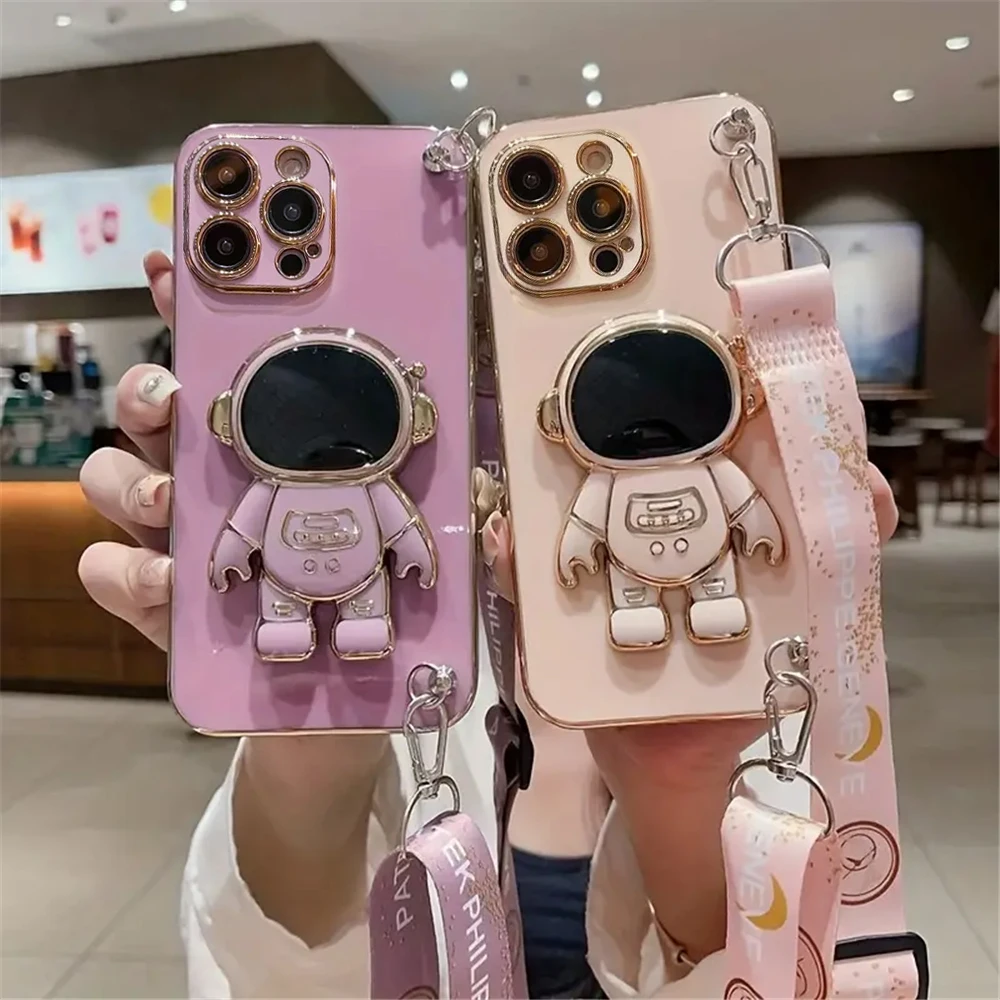 Funda chapada con cordón cruzado Nova 5T para Huawei Nova 11 Pro 10 9 SE 8 7 Nova Y90 Y70 Plus, funda de silicona con soporte de astronauta