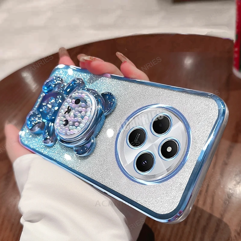 Funda de silicona chapada con soporte de oso bonito para Xiaomi Redmi 14c 13c 12 12c 10a 10c A1 A2 Plus A3 A3x funda con soporte Poco C75 C65