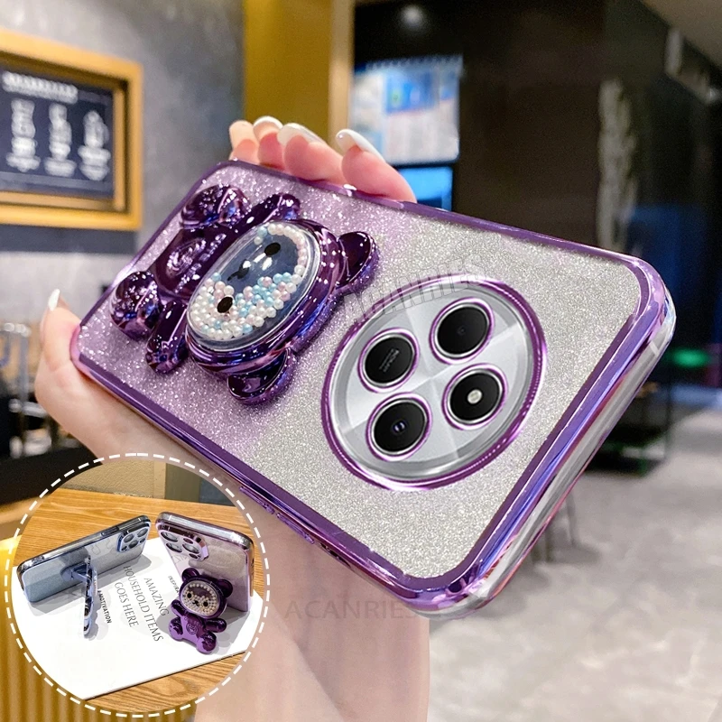 Funda de silicona chapada con soporte de oso bonito para Xiaomi Redmi 14c 13c 12 12c 10a 10c A1 A2 Plus A3 A3x funda con soporte Poco C75 C65