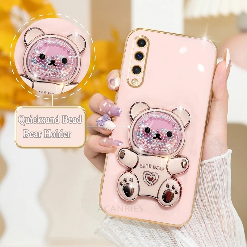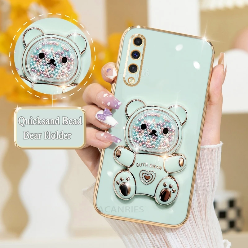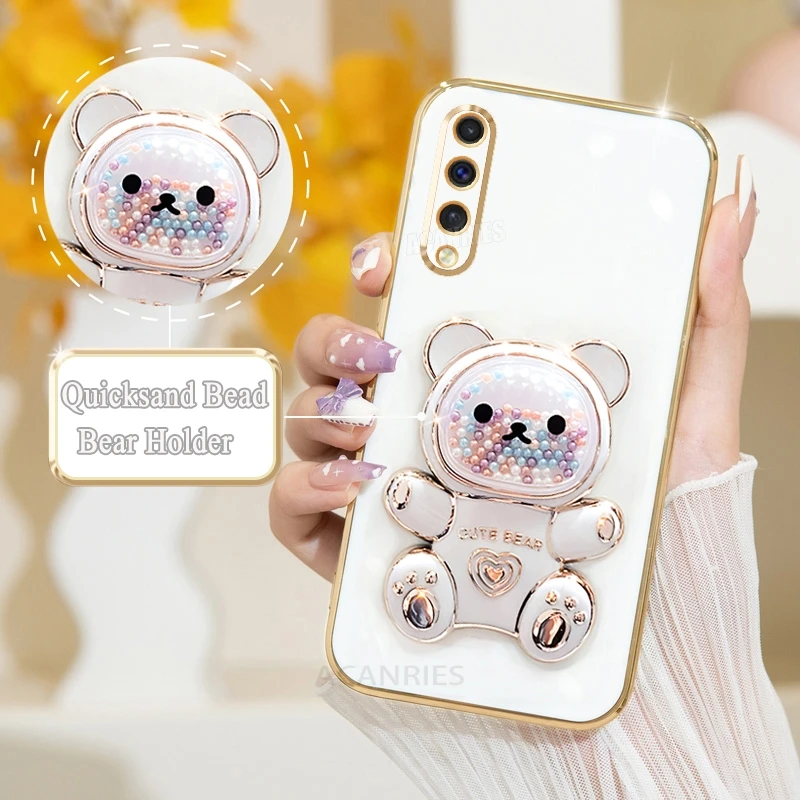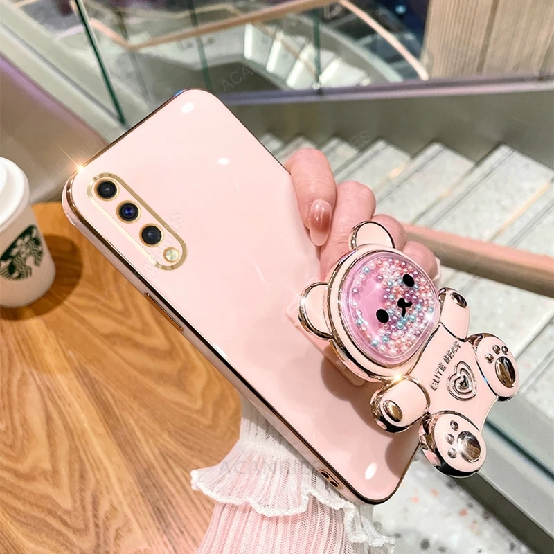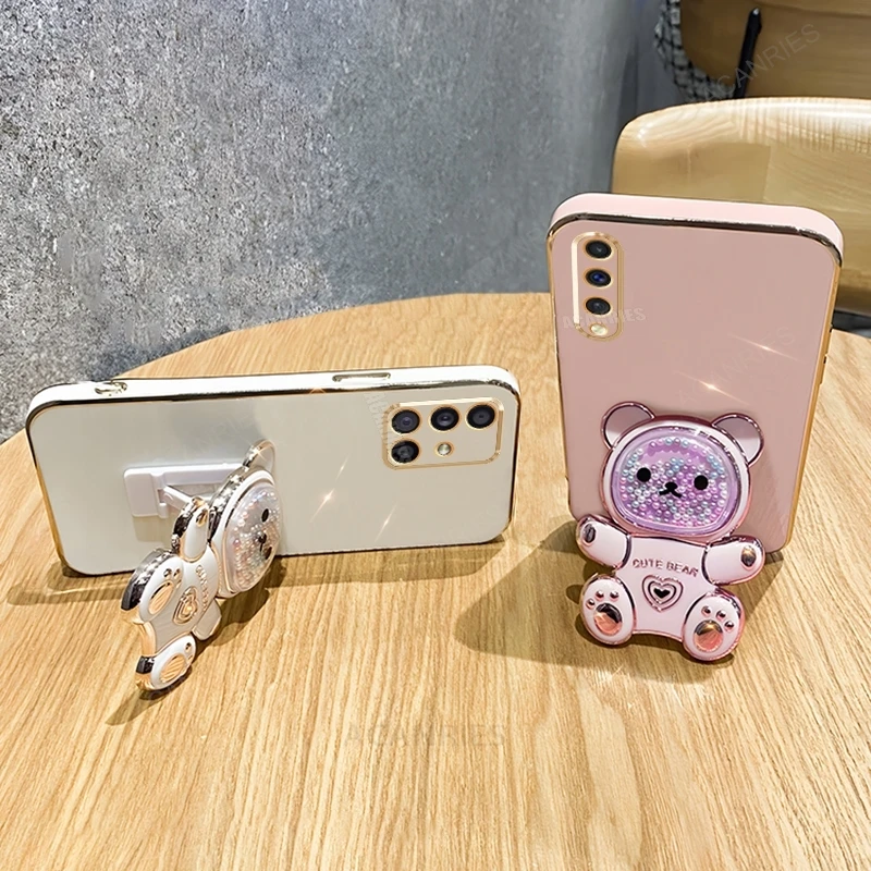 A 50 70 20 30 Quicksand Bear Holder Plating Case para Samsung Galaxy A50 A70 A30s A7 2018 A21s A20s A20 A30 Funda de silicona con soporte