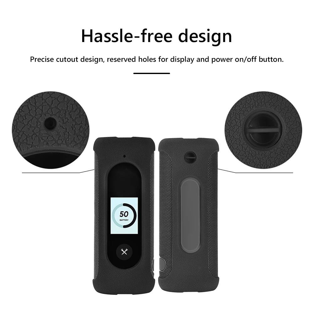 3.Acceso sin obstáculos a las funciones:Con sus recortes precisos, la funda de silicona permite un fácil acceso a la pantalla, el botón de encendido/apagado y los puertos de carga. El diseño de recorte preciso en la parte magnética no bloqueará el imán.Asegurando que puedas cargar y reproducir música sin quitar el estuche.Este cuidadoso diseño significa que la funcionalidad de su altavoz nunca se ve comprometida, lo que brinda comodidad y eficiencia de uso.