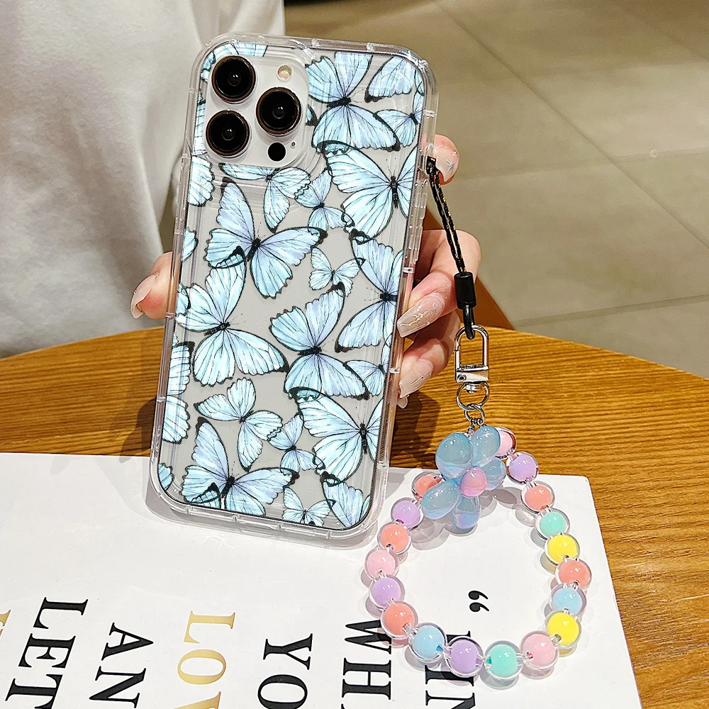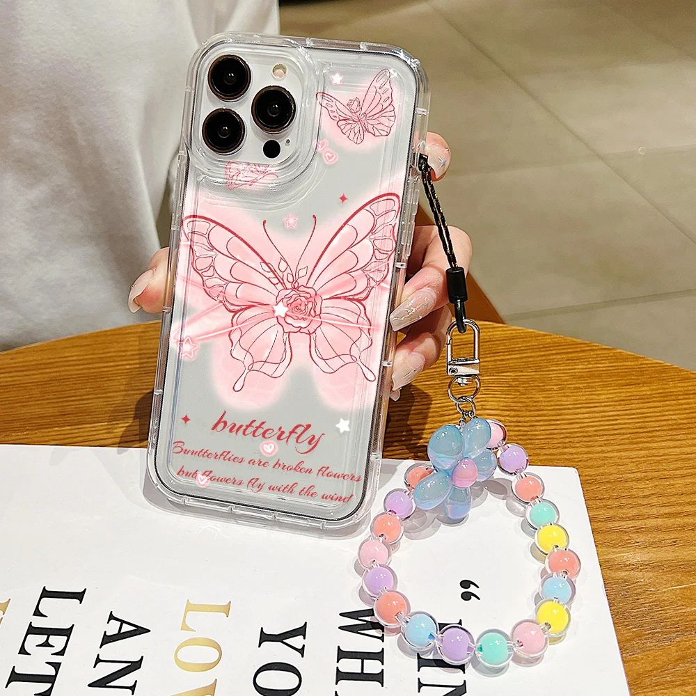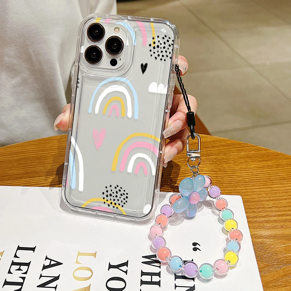 Funda de teléfono para iPhone 13 14 12 11 15 Pro Max XR X XS 7 8 Plus 6s SE 2020 silicona suave correa de muñeca de lujo a prueba de golpes