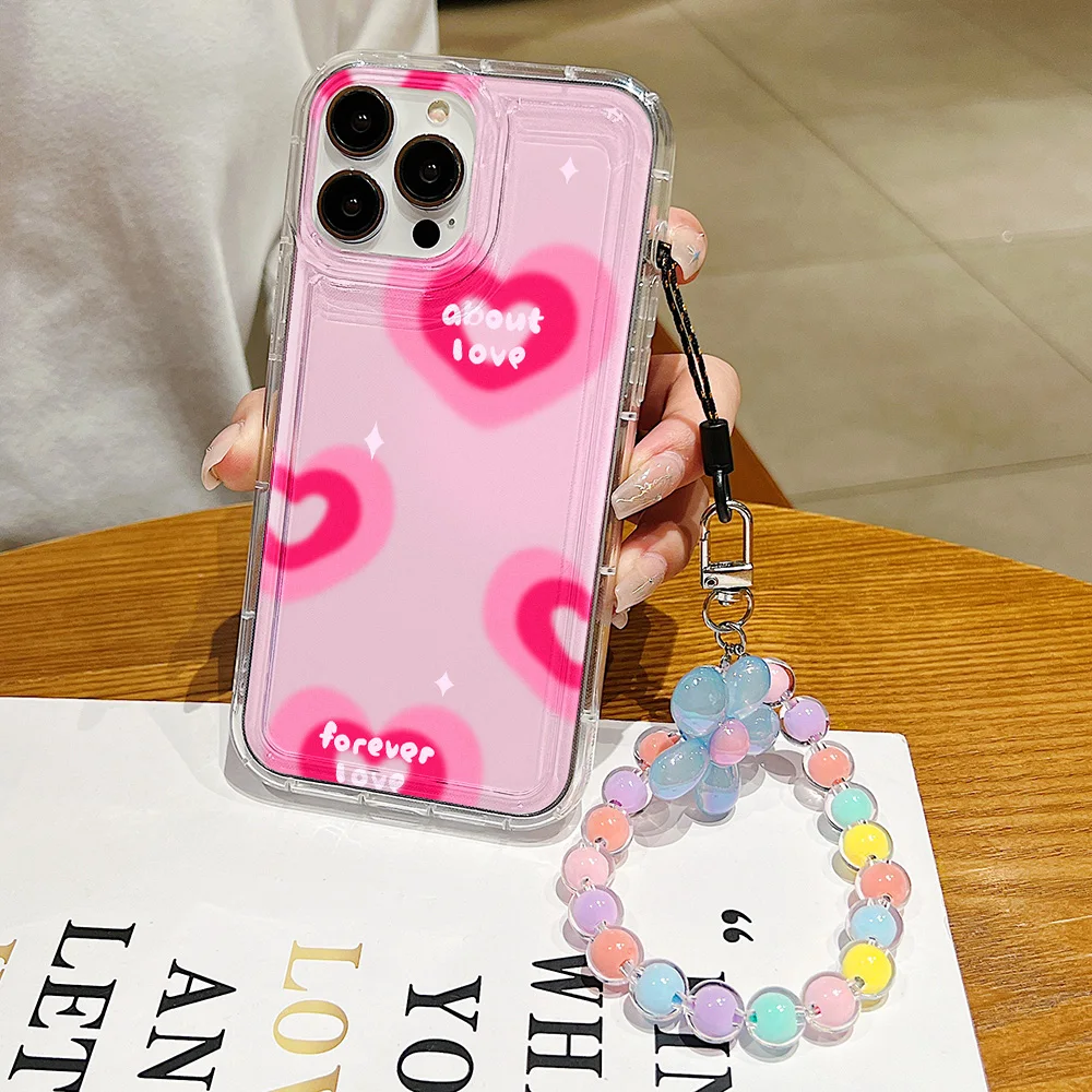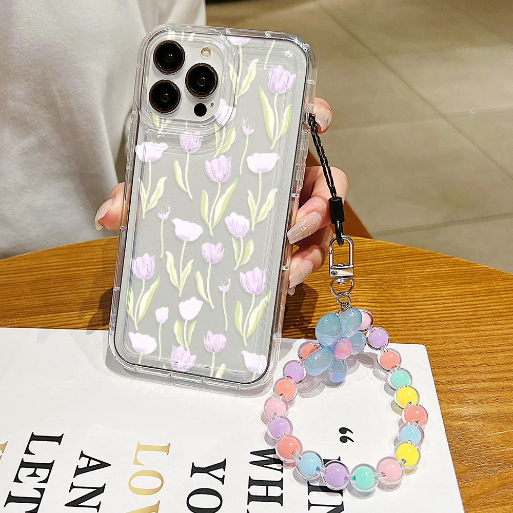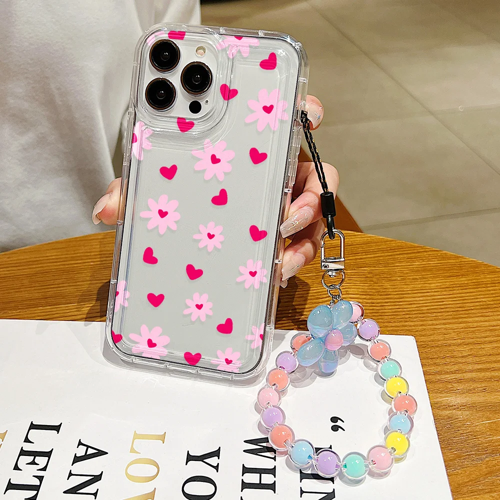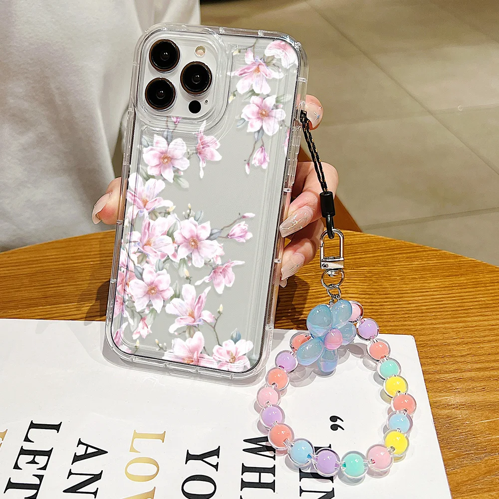 Funda de teléfono para iPhone 13 14 12 11 15 Pro Max XR X XS 7 8 Plus 6s SE 2020 silicona suave correa de muñeca de lujo a prueba de golpes