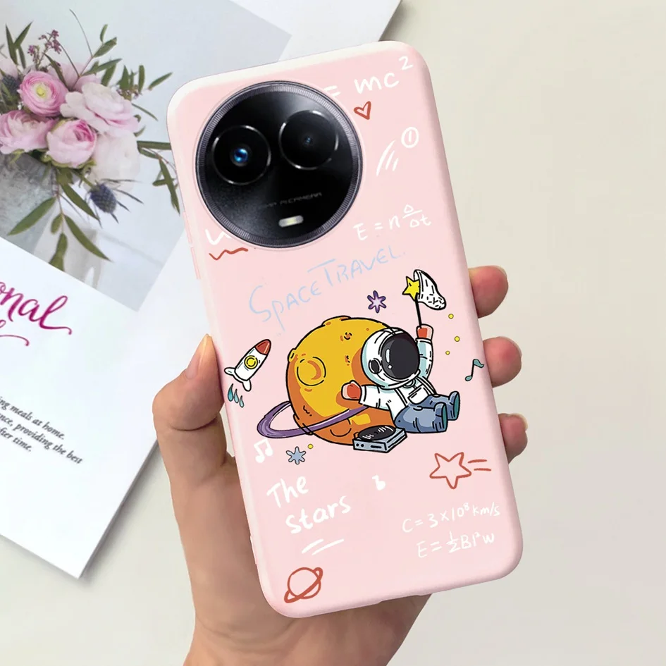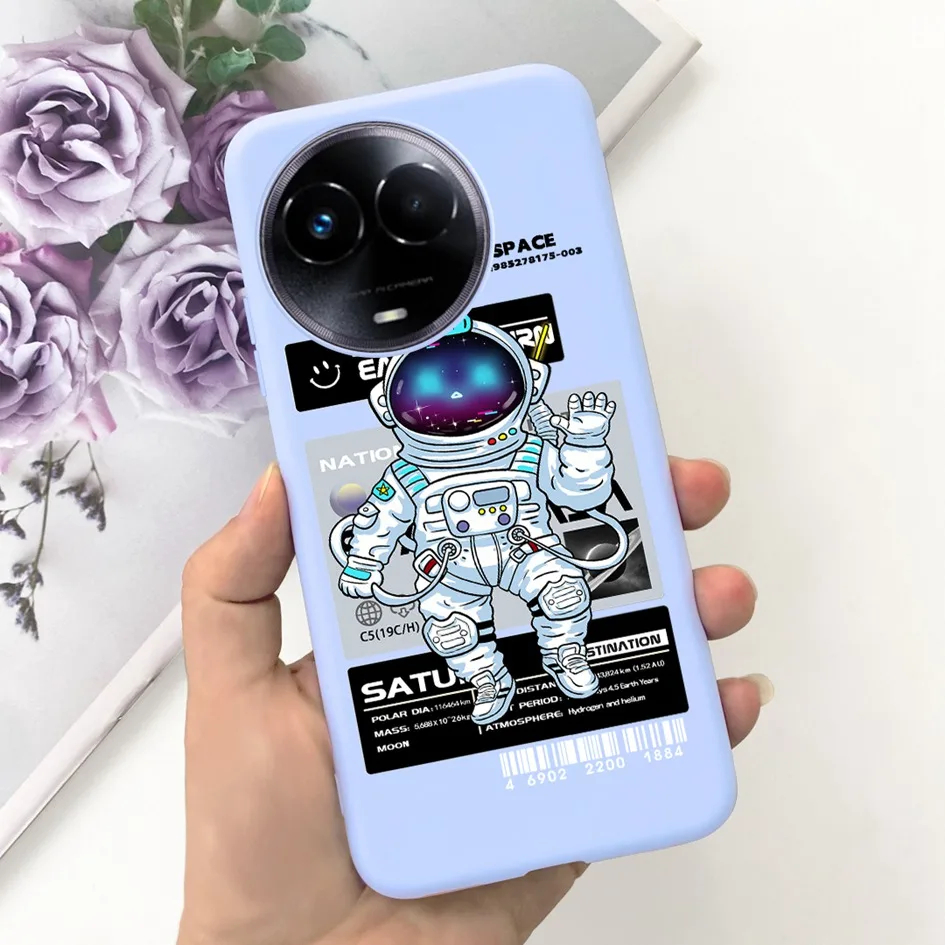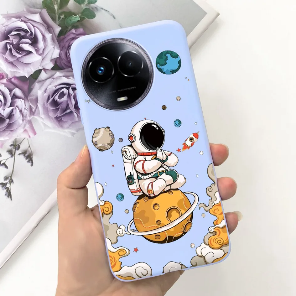 Para la funda RMX3780 de 11 5G, funda de silicona suave con flor de astronauta encantadora, parachoques a prueba de golpes para la funda RMX3780 de 11 Pro Plus Realme11x Capa